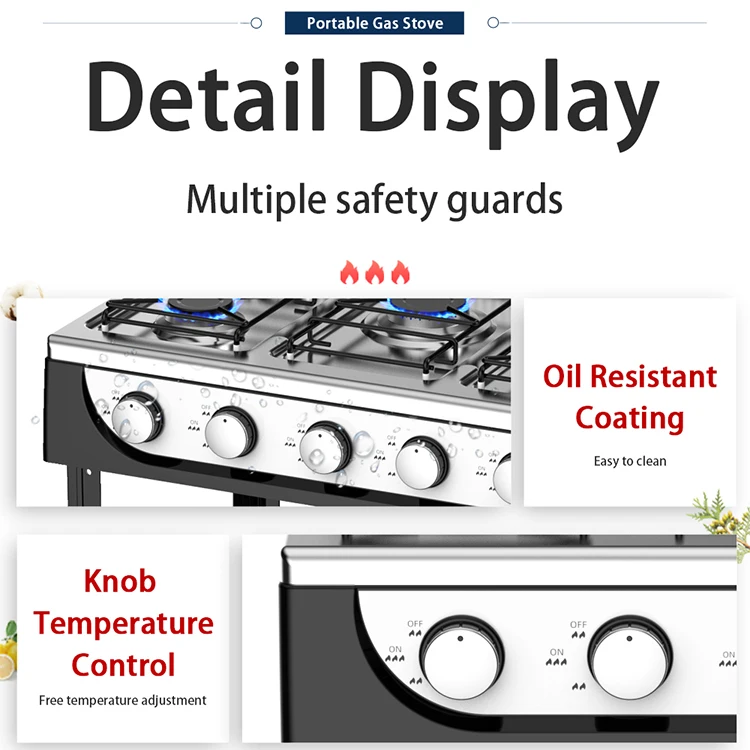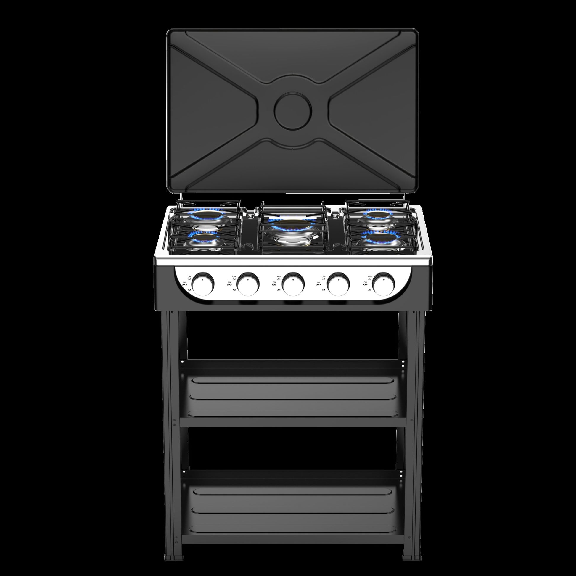 5 Burner Cooktop Commercial Kitchen Gas Stove Free Standing With Iron Lid LPG Gas Powered Portable for Outdoor Installation