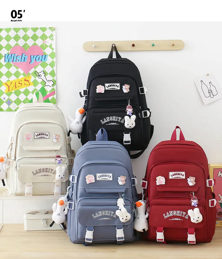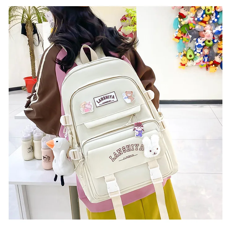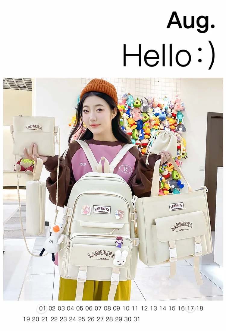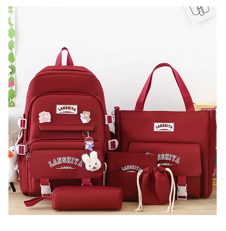 5-piece Set of Free Pendants Forest Style Korean Version Casual Harajuku Student Backpack for High School Girls Large Capacity