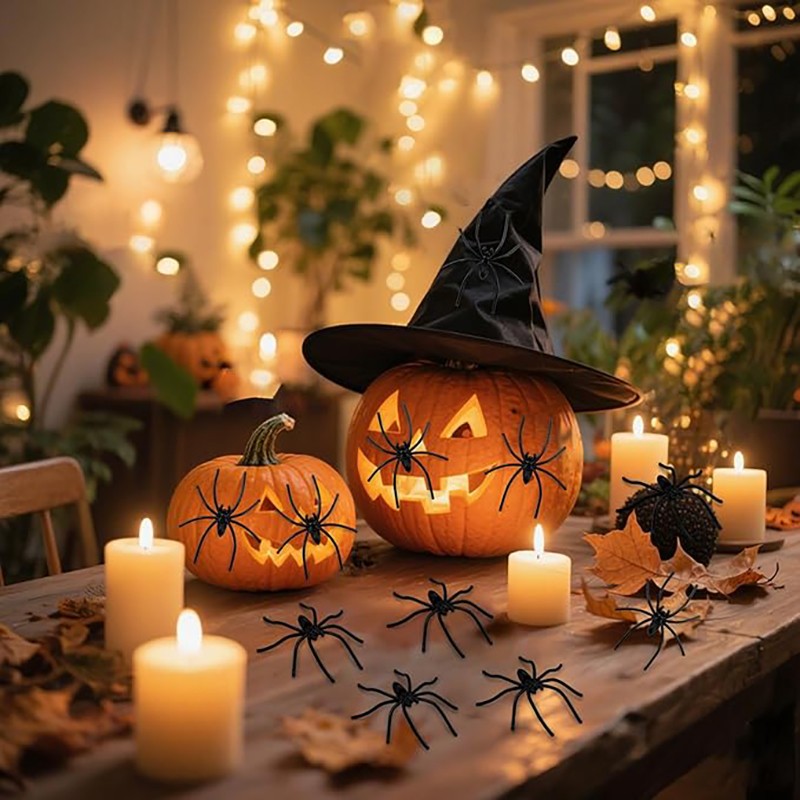 50/100Pcs Plastic Spider Halloween Black Fake Artificial Spider Toy For Prank Haunted House Decoration Navidad Party Supplies