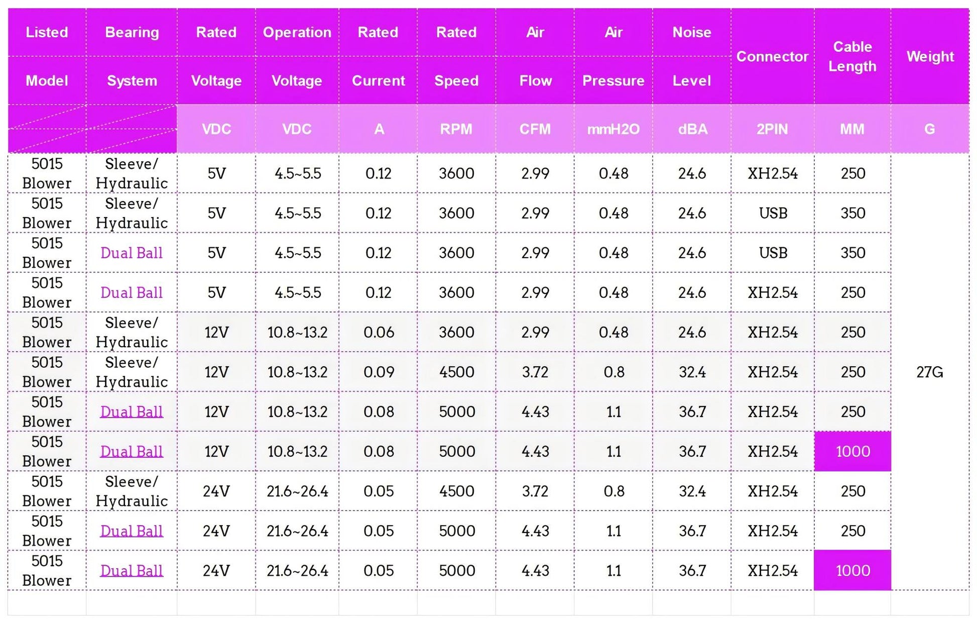 5015 50mm DC 24V 12V 5V 2Pin Dual Ball/Sleeve Bearing Brushless Cooling Turbine Blower Fan 50mm x 15mm Blower Cooler Fan