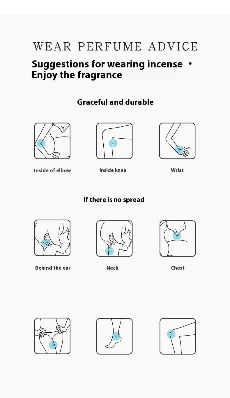 Whether you're heading to a casual outing or a social gathering, this perfume is your go-to accessory. Its elegant bottle design is as sophisticated as it is practical, making it an ideal gift for friends or a treat for yourself. The perfume's versatility extends to its usage, as it can be applied to various parts of the body, ensuring that your scent is evenly distributed and long-lasting.