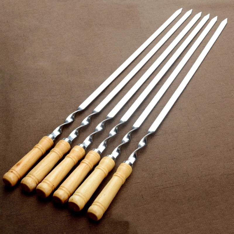 55cm Large Barbecue Skewer Reusable Stainless Steel BBQ Kebab Stick with Wooden Handle Outdoor Camping Picnic Tools Cooking Tool