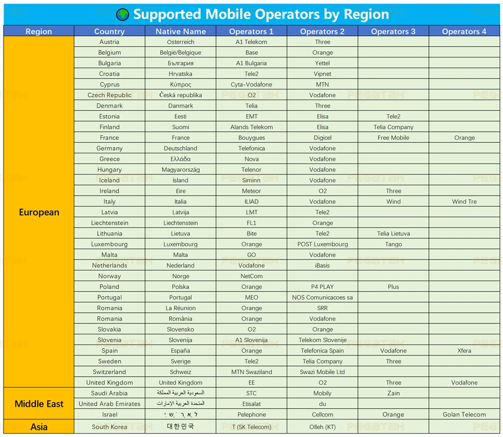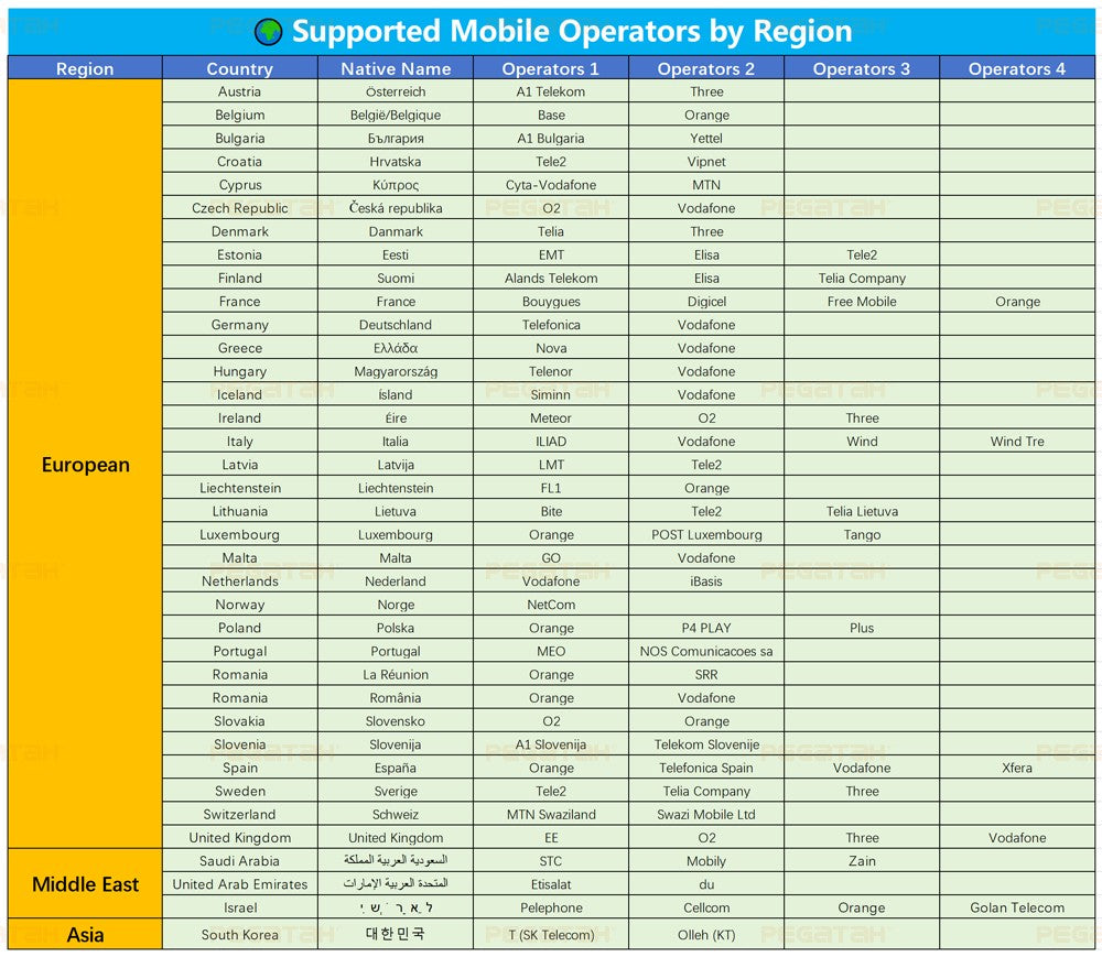 • Guaranteed Connectivity: Perfectly tuned for local carriers in supported countries