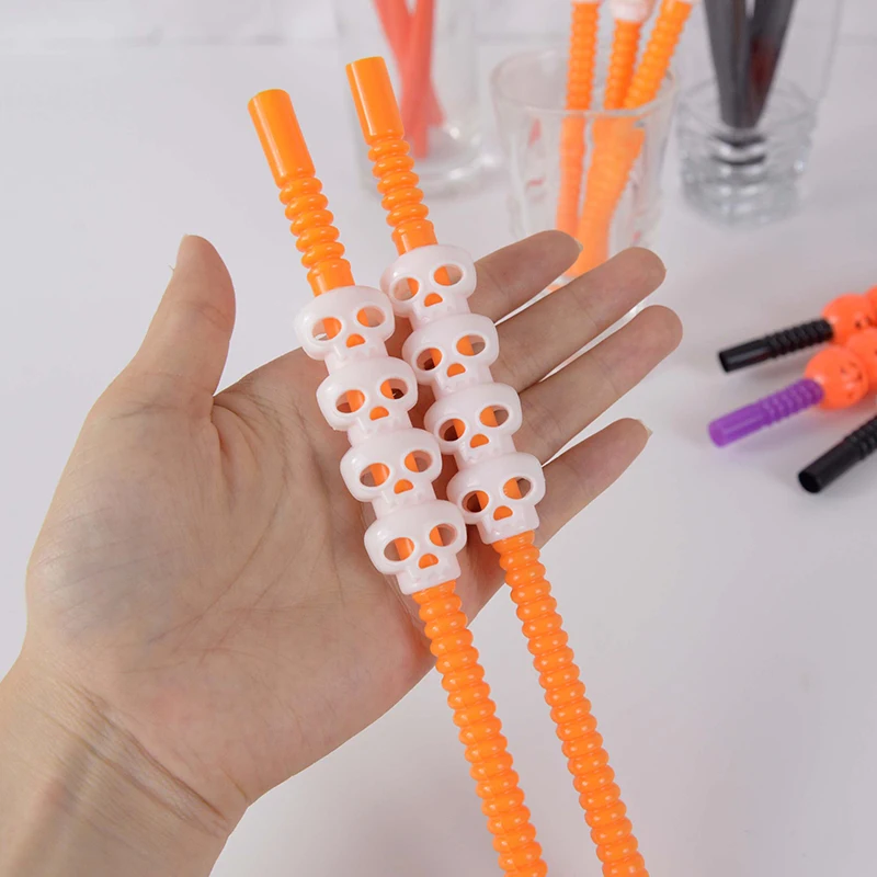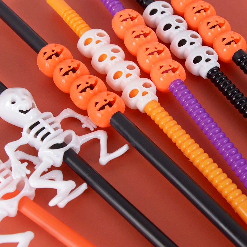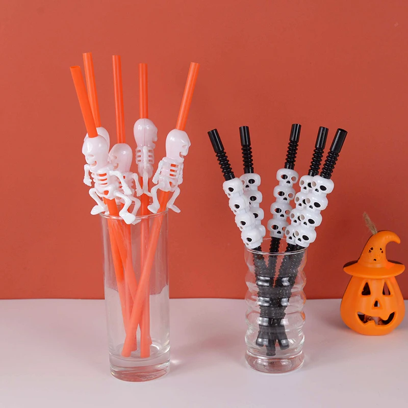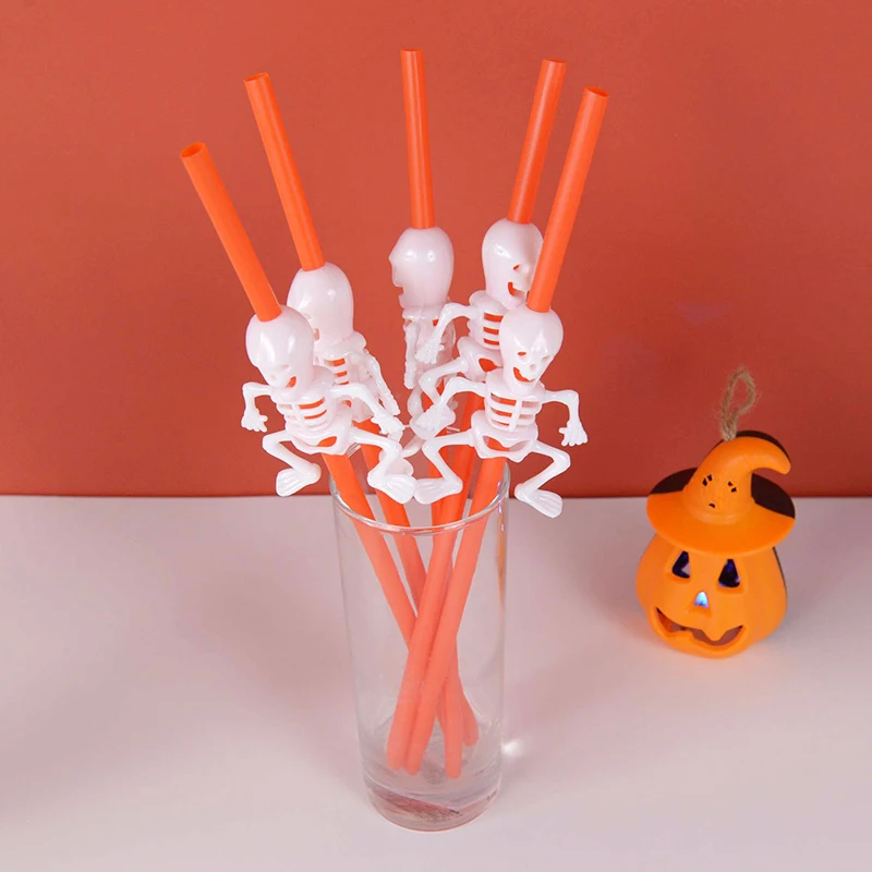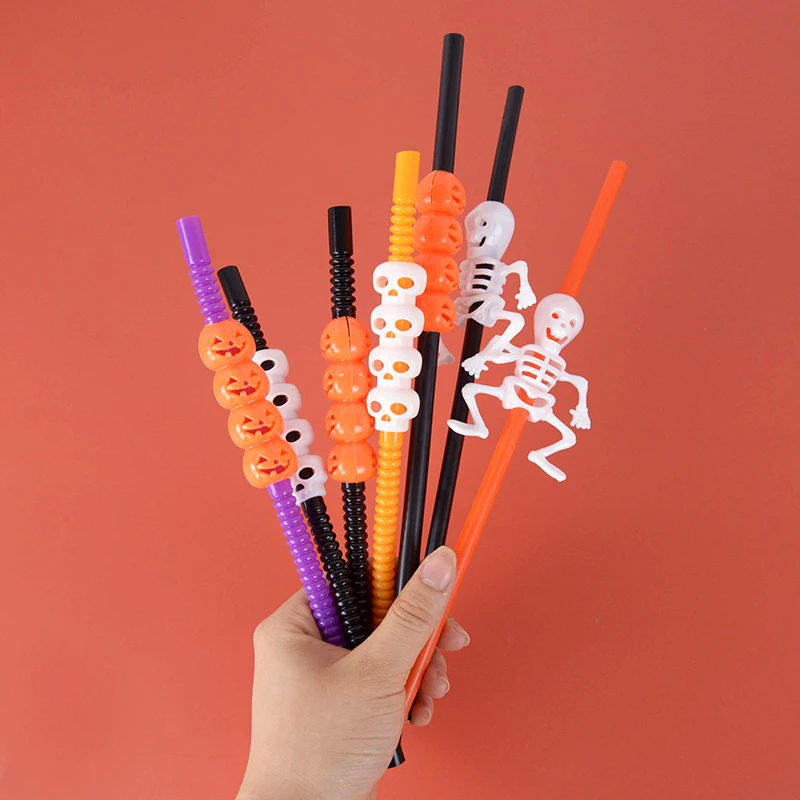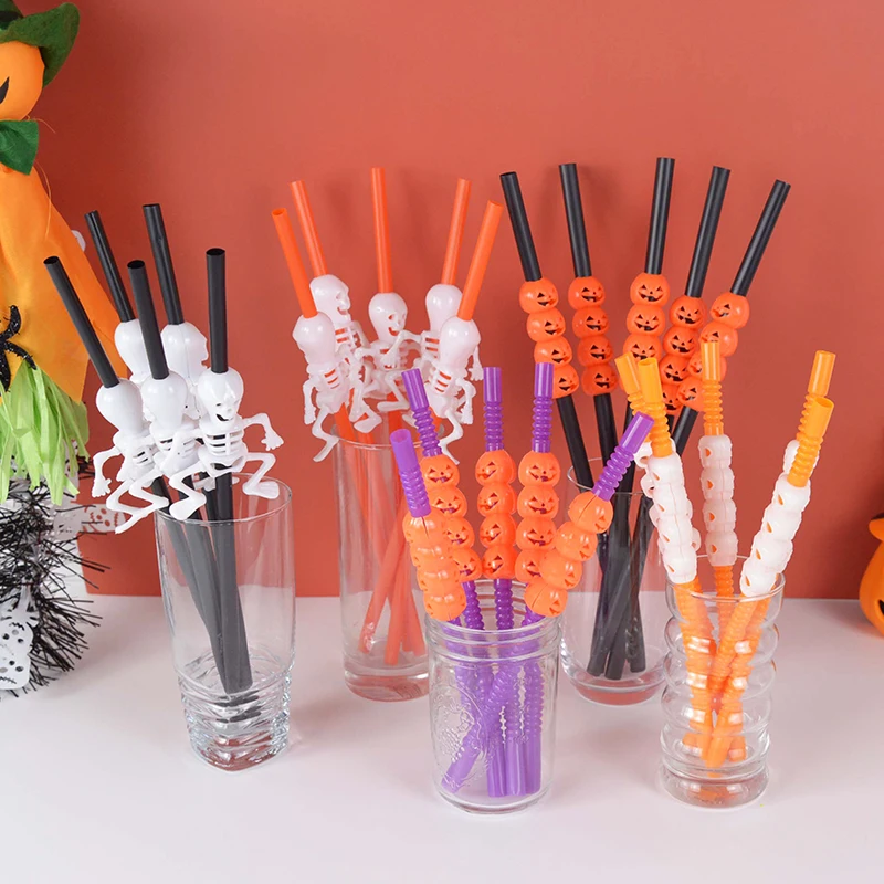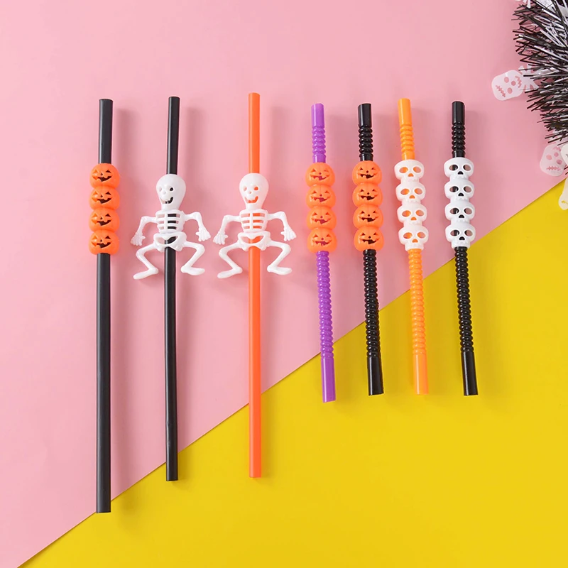 5Pcs Halloween Straws Reusable Plastic Pumpkin Skull Straw 2025 Halloween Bar Party Decoration Supplies Beverage Ornaments