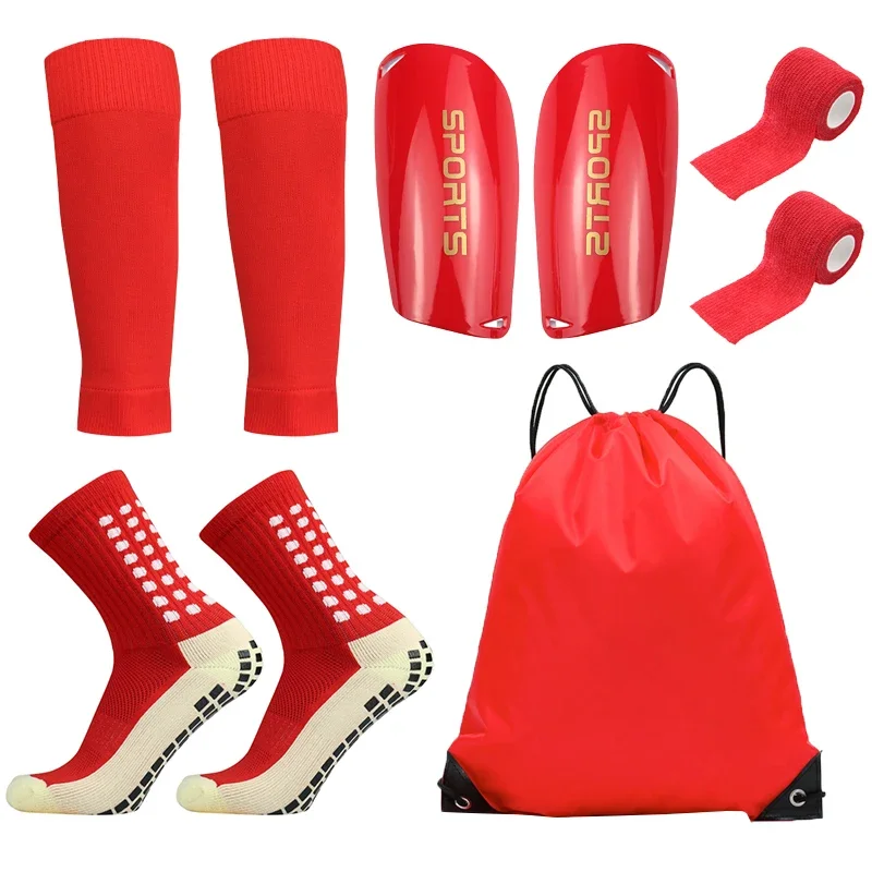 5PCS Set Teenagers Football Bag Soccer Socks Grip Men Sport Socks Soccer Leg Cover Shin Pads Soccer Training Shank Board Bandag