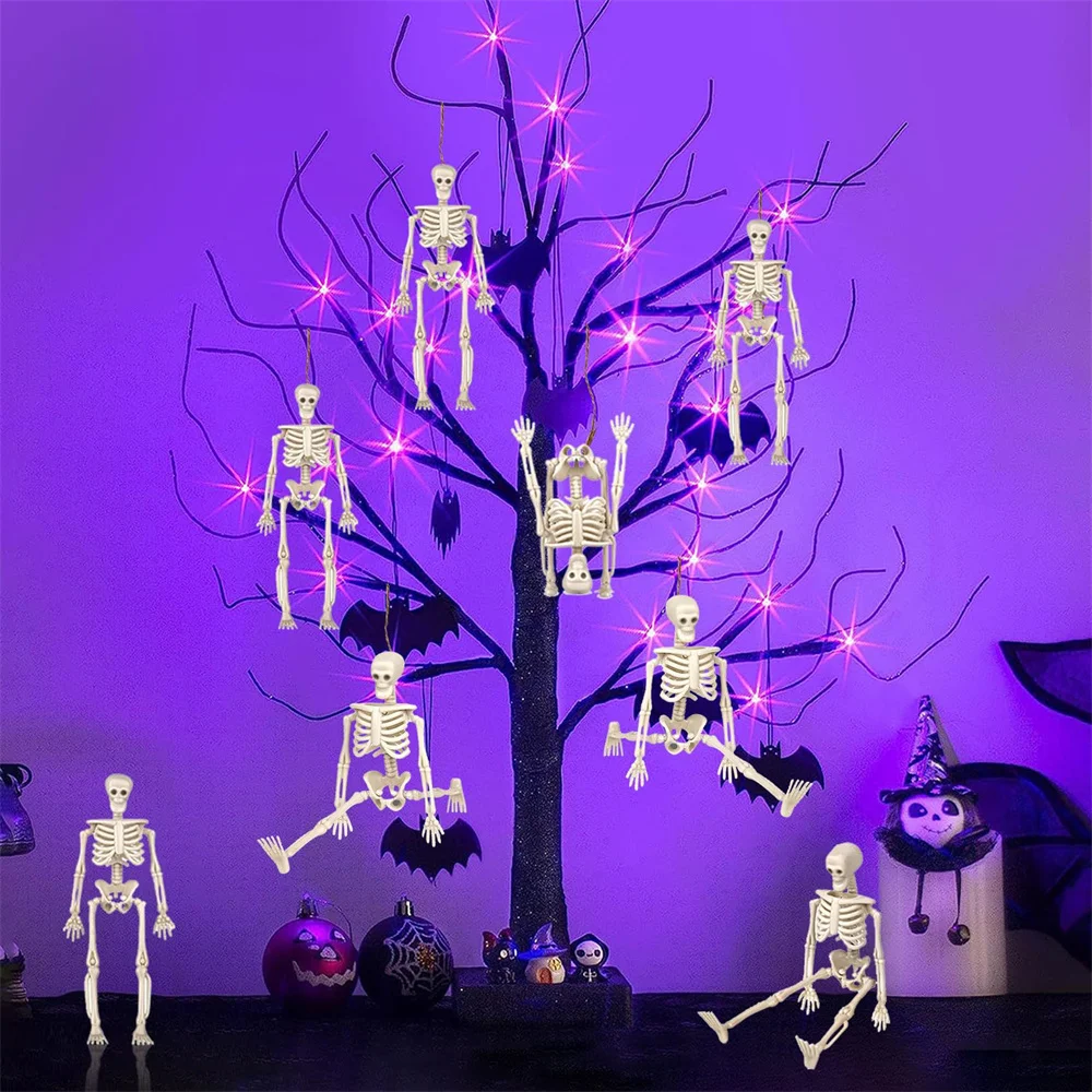- Halloween decorations skeleton great for Halloween party favors,trick or treat party,skeleton party supplies,graveyard scenes,haunted houses, and Halloween tabletop decor.Still perfect for hanging on trees, windows or porches to add a horrible atmospher