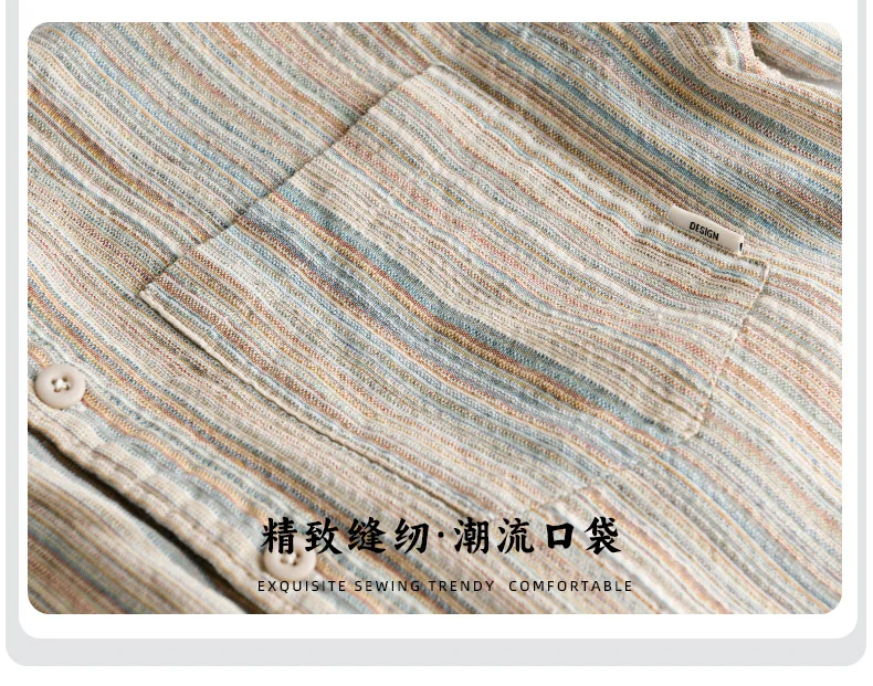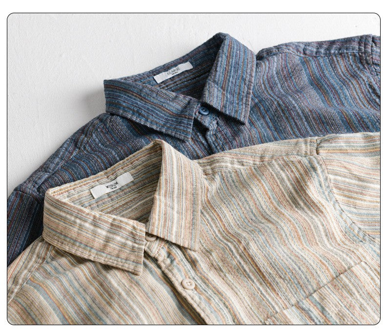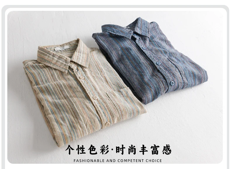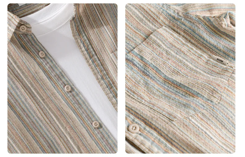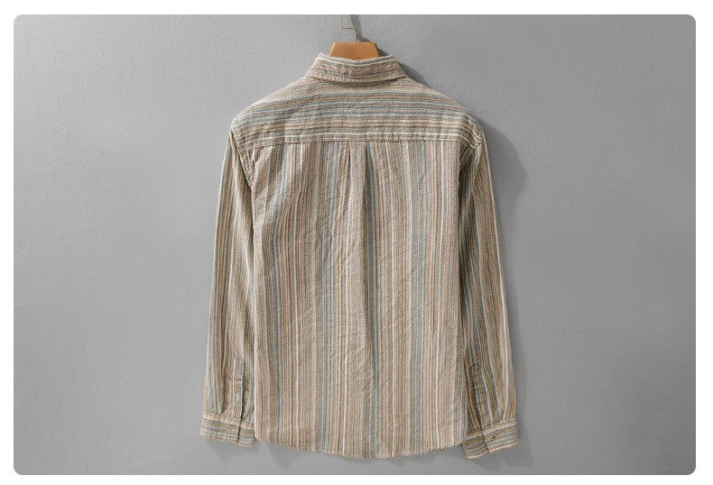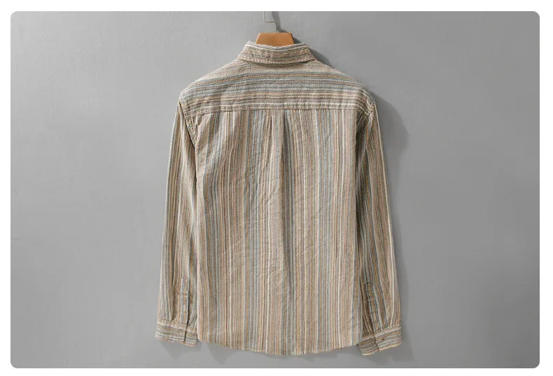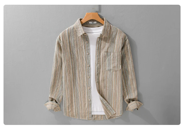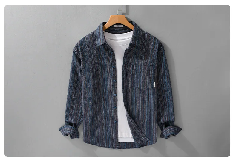6158 Spring Fashion Japan Style Vintage Stripe Simple Cargo Shirt for Men Good Quality Cotton Long Sleeve Slim Fit Casual Blouse