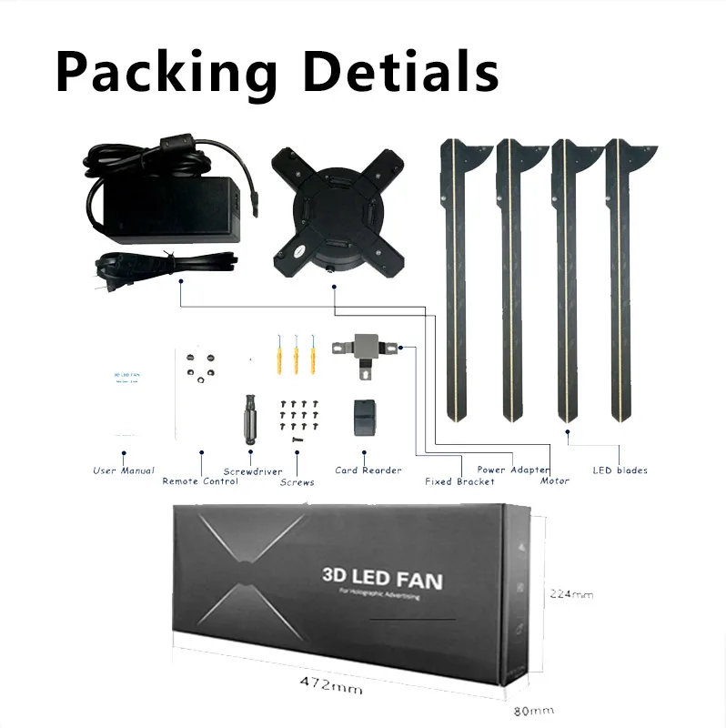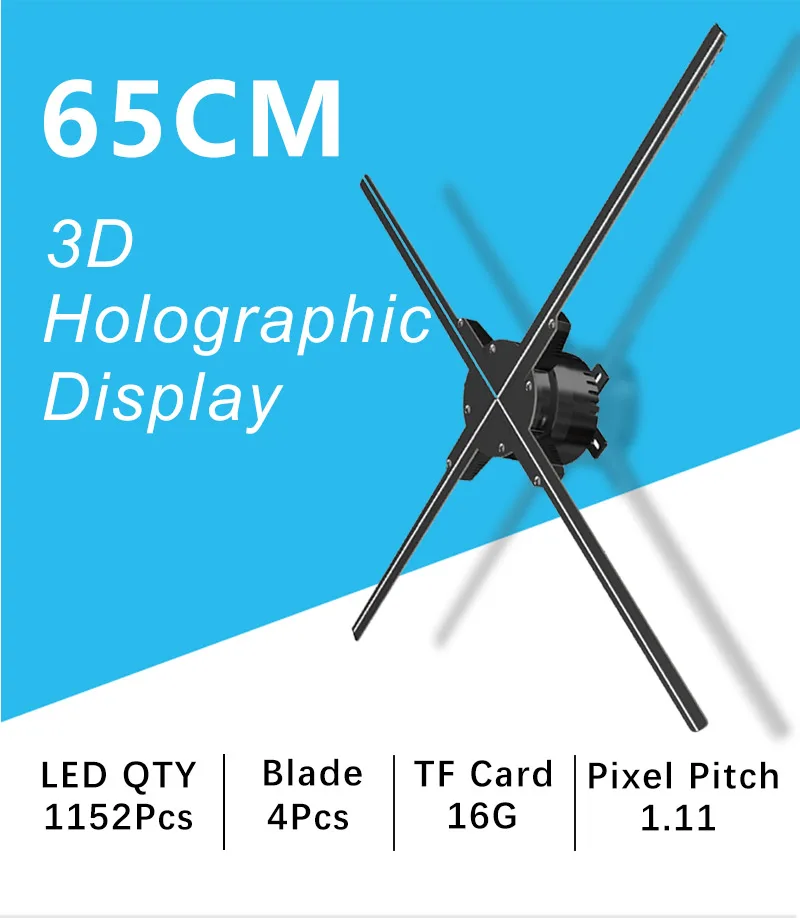 65CM 1152Pcs LED WIFI 3D Projector Light Hologram Projector PC Control LED Holographic Fan logo Advertising Light Remote Player