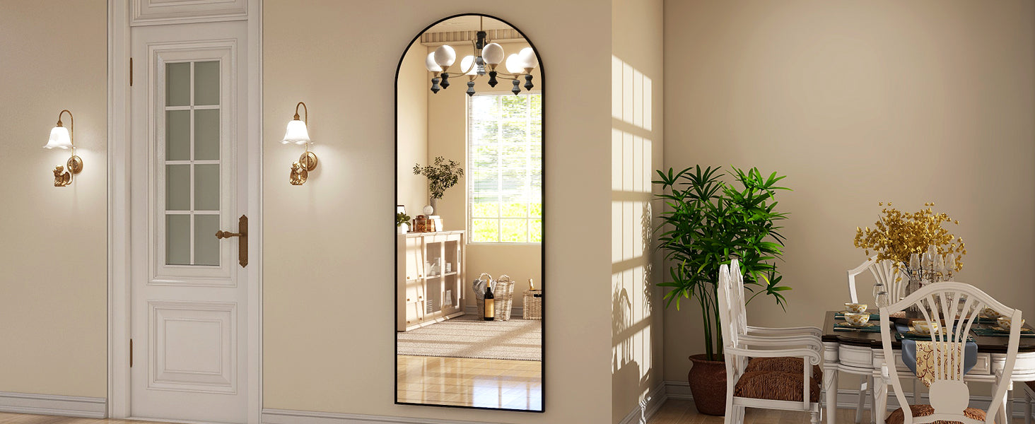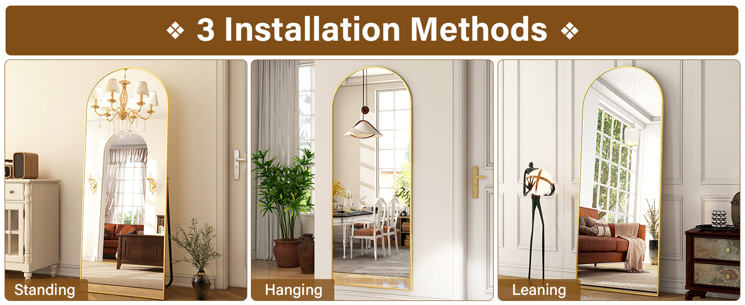 65"x24" Arched Full Length Mirror | Free Standing & Wall-Mounted | Full-Length Mirror with Stand | Modern Gold Mirror for Living