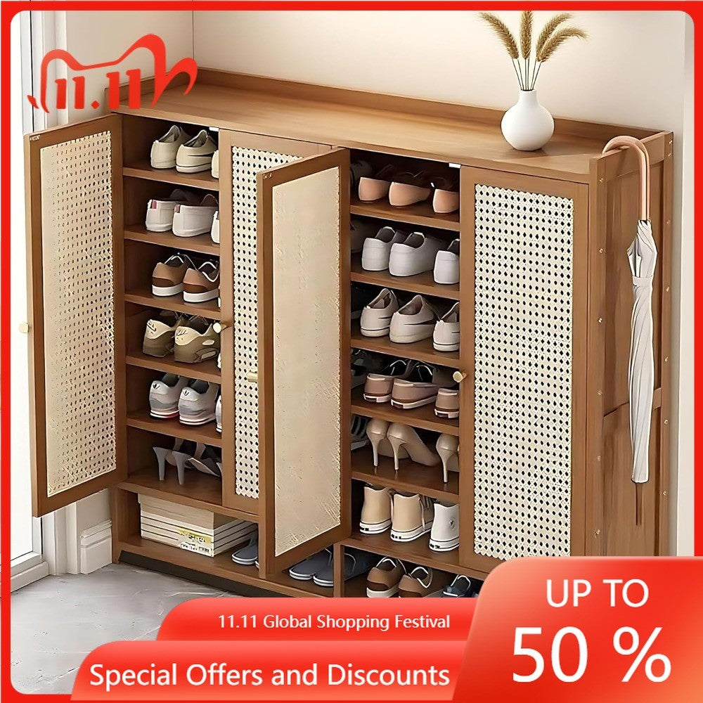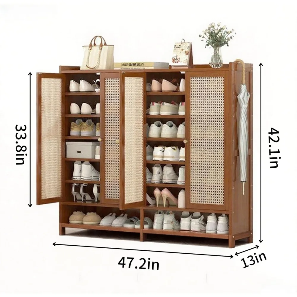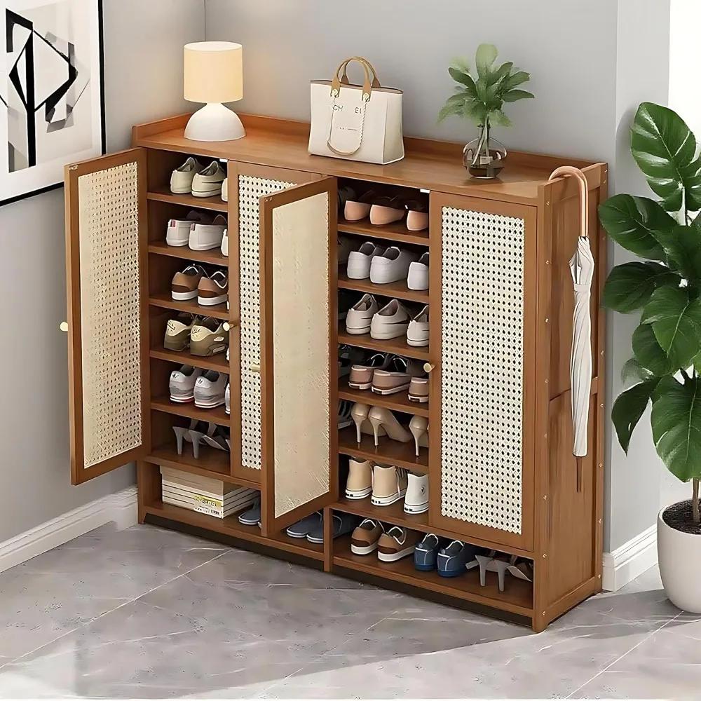 - Large Apacity Storage? Our bamboo shoe cabinets have a 7-layer structure, including a 6-layer cabinet and a layer of storage grid, providing you with enough space to meet your family's needs. The shoe rack storage organizer allows you to store shoes of different heights in different areas, thereby improving space utilization.