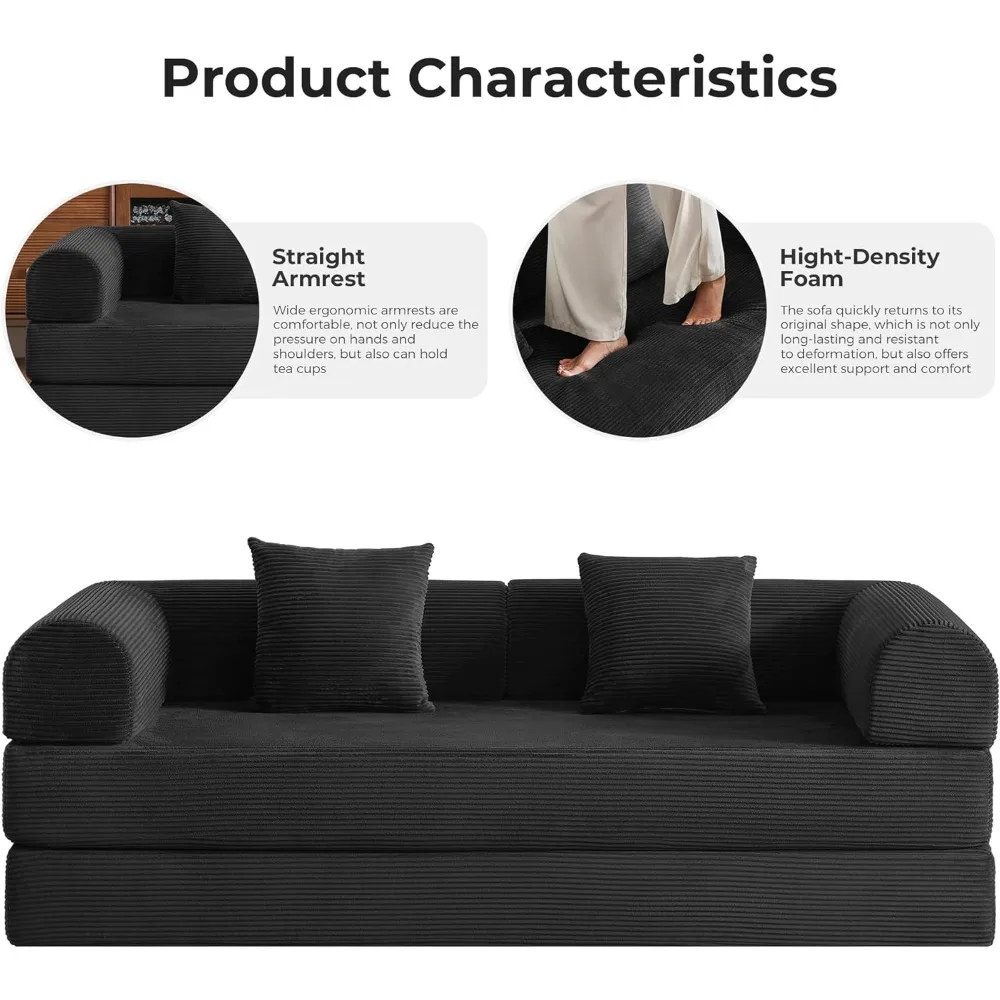 - ?Quality Materials?This low-profile sofa is made of breathable Small Streak corduroy fabric with a high-density foam outer layer that provides cloud-like support and relieves pressure points. It can be used as a sofa during the day and as a sofa bed at night, which is cost-effective!