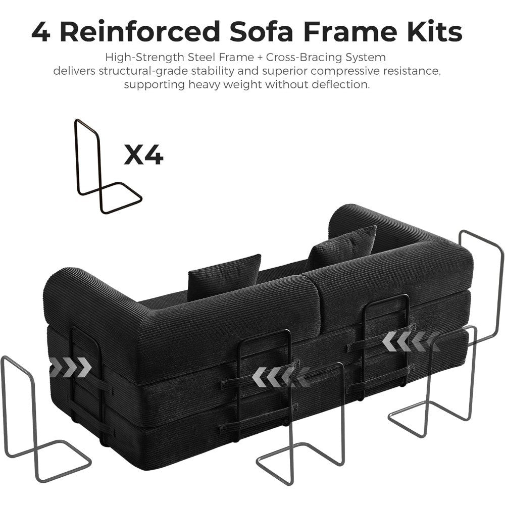 79" Convertible Sofa Bed, Corduroy Convertible Sleeper Sofa Bed, Boneless Couch with Fixed-Shape Frame, Floor Sofa Modular Couch