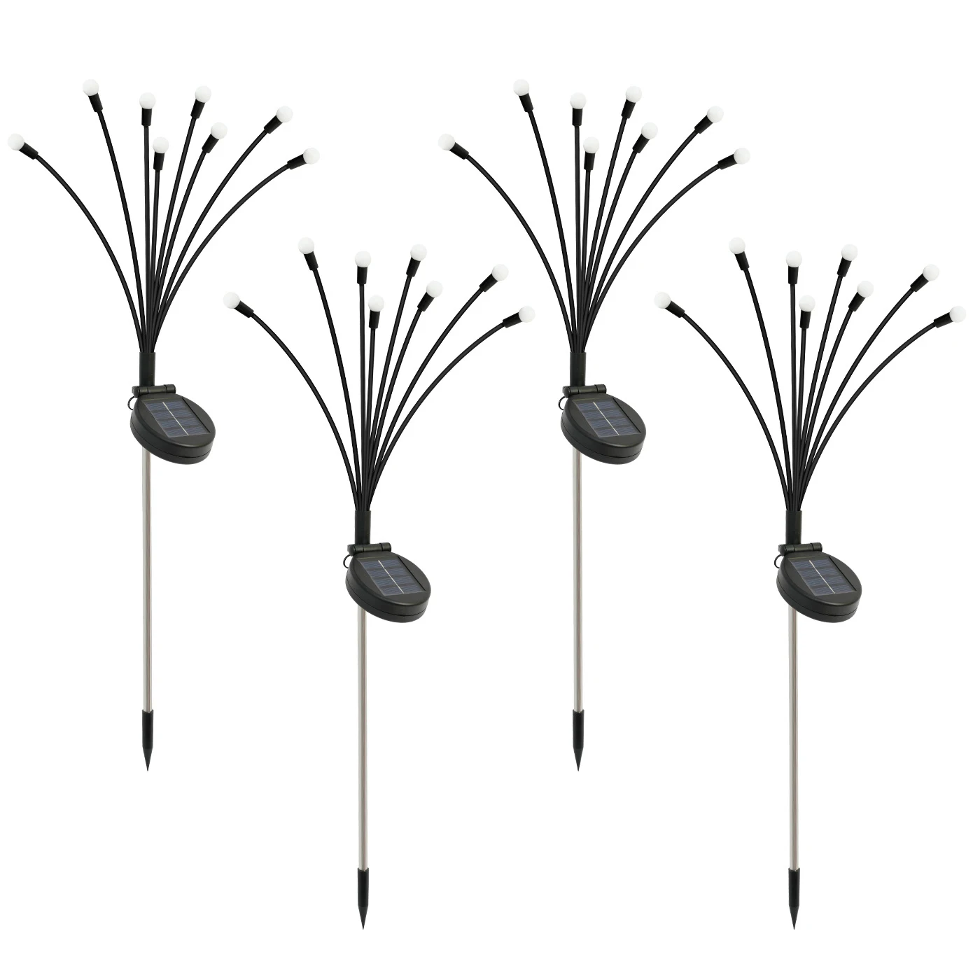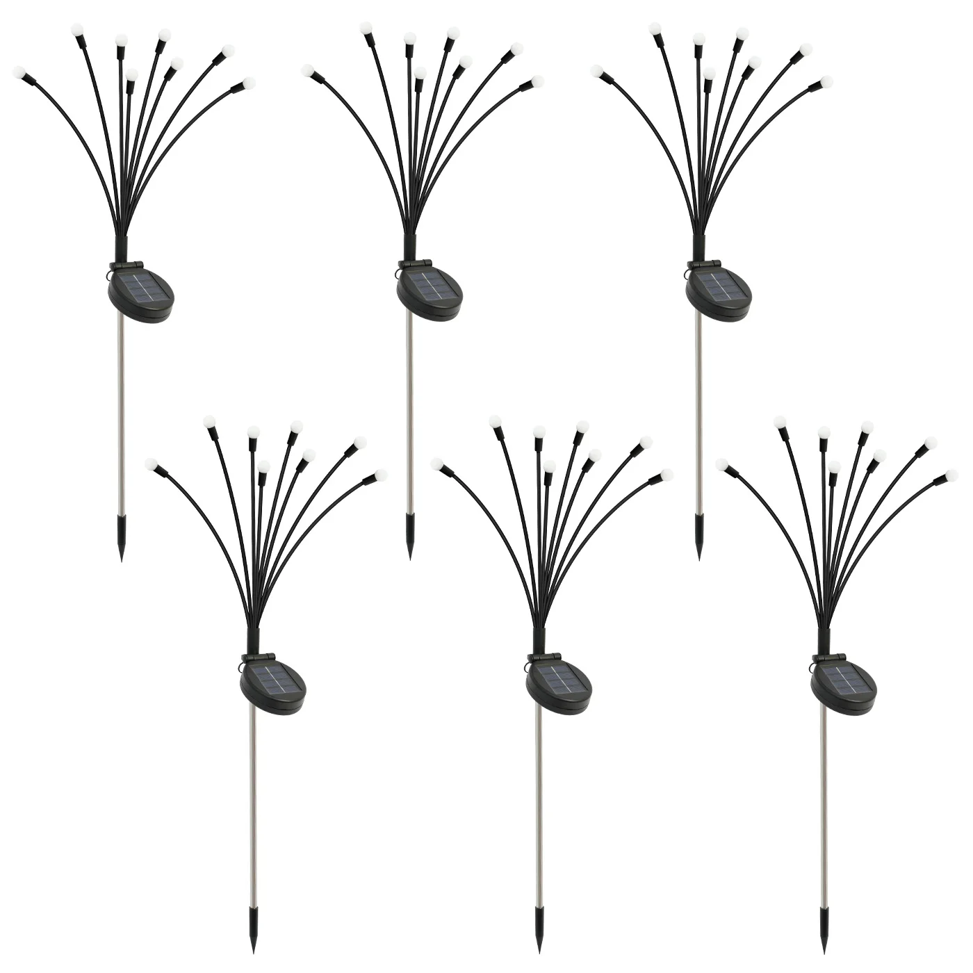8-Head Solar Firefly Lights, Outdoor Decorative Garden Lights, Waterproof, High Flexibility Iron Wire with Heavy-Duty Bulb Base, Warm White Round Bulb Design, Six-Pack/Four-Pack/Two-Pack