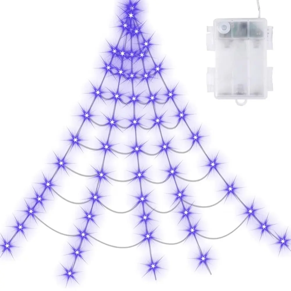 8 Modes Halloween Spider Web Lights Glow Waterproof LED Spider Net Triangle Hanging Scary Giant Spider Party