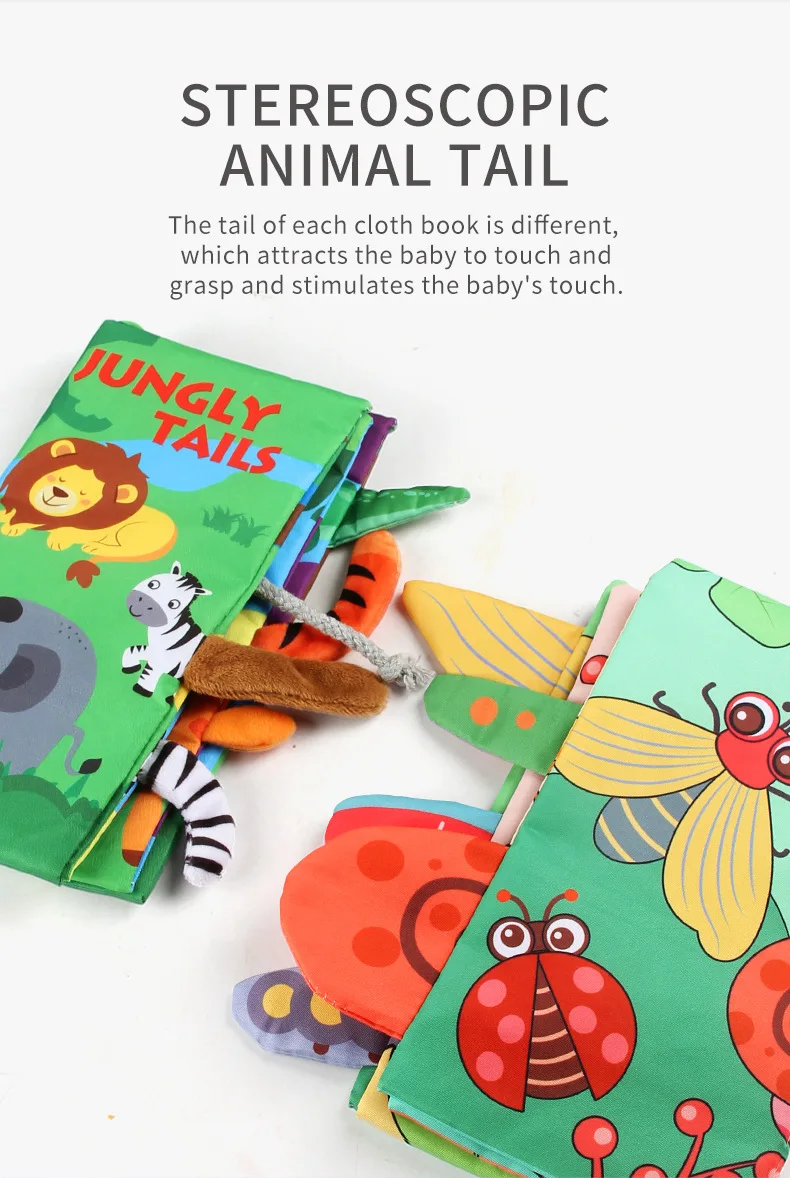 8 Page Tail Cloth Book Touch And Feel Infant Soft Books Cartoon Animals Development Interactive Early Education Toys For Baby