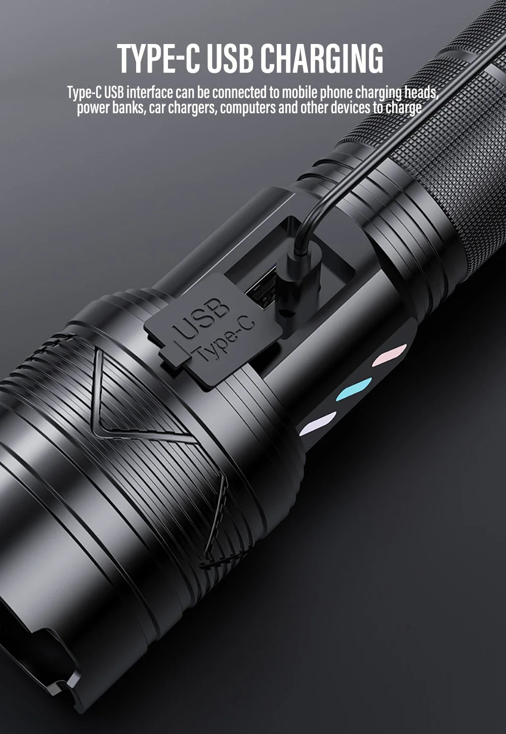 800000lm High Power Strong Light Long Range LEP Flashlight USB Charging 26650 Battery Outdoor Telescopic Zoom Super Bright Torch