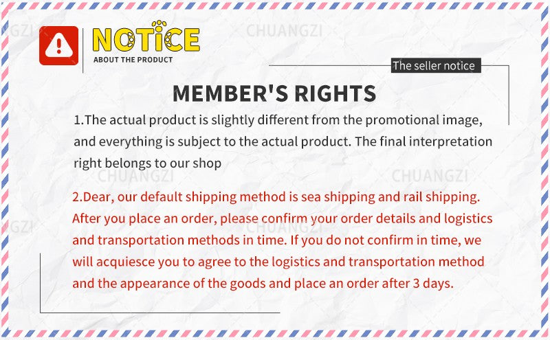 Dear friends, thank you very much for ordering our products. Our default mode of transportation is sea transportation or railway transportation. This kind of transportation is door-to-door and does not require customs declaration. The time limit is 45-70 days. You can also choose express delivery. The transportation time is 7-15 days. Choosing express delivery requires you to pay extra fees, while express delivery requires you to handle customs declaration fees and customs clearance yourself. Of course, when you deal with customs clearance, we will help you with customs clearance and provide you with the documents needed for customs clearance. Note: Our service does not include dealing with customs declaration fees and customs clearance issues arising from express logistics. In the process of transportation, we don't accept any form of rejection or dispute. If you have any questions after receiving the goods, please contact the seller as soon as possible. We will serve you wholeheartedly, but we will not accept malicious submission of disputes. Once submitted, we will automatically give up after-sales service by default.