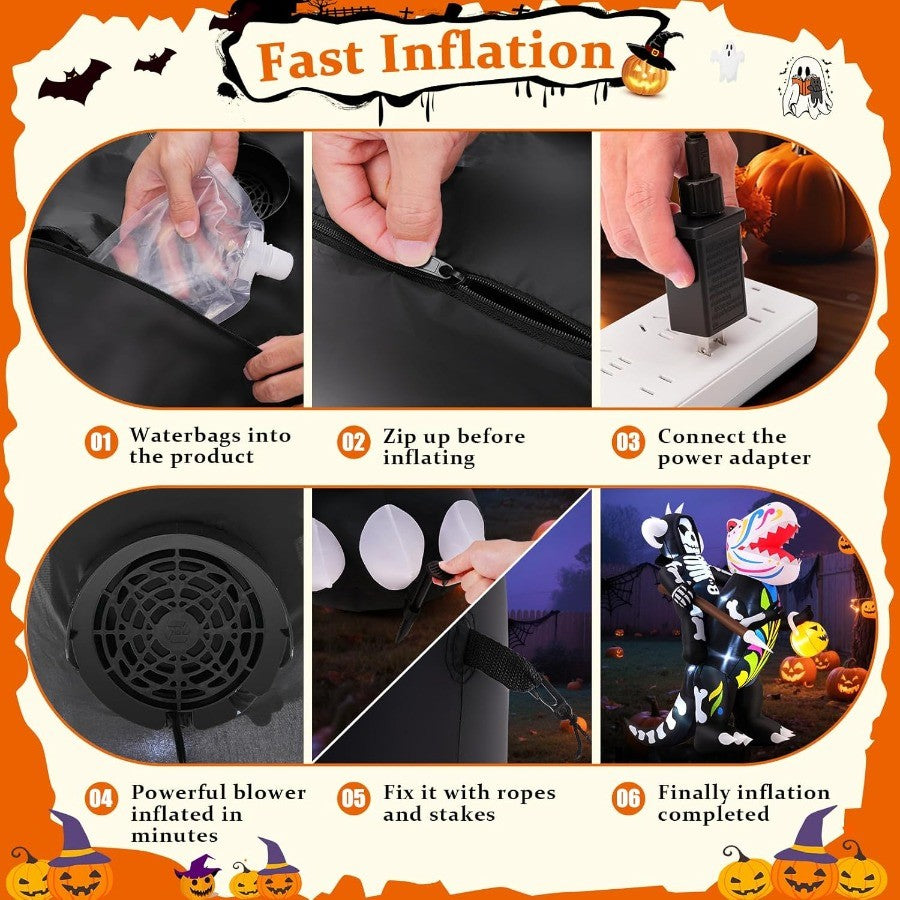Hassle-Free Self-Inflation & Secure Storage? - Enjoy ultra-simple setup: just plug in the built-in fan, and the 8FT skeleton knight inflates fully in seconds—no complicated tools needed. For extra stability, it comes with water bags and ground stakes (with fixed ropes) to prevent being blown away by wind. When Halloween ends, it deflates easily and folds compactly for convenient storage, saving space until next year’s festivities.?