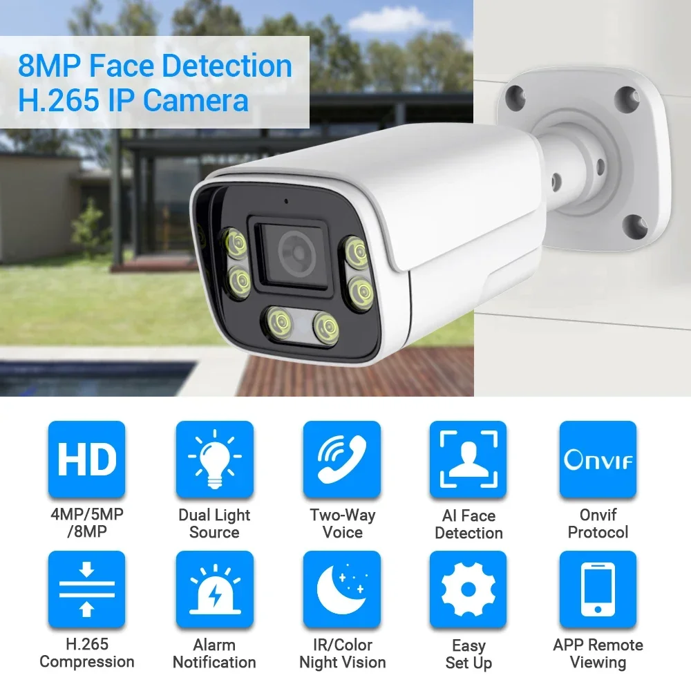 8MP 4K IP Camera Face Detection H.265 Two Way Audio Color Nightvision Outdoor 5MP HD POE Security CCTV Home Surveillance Camera