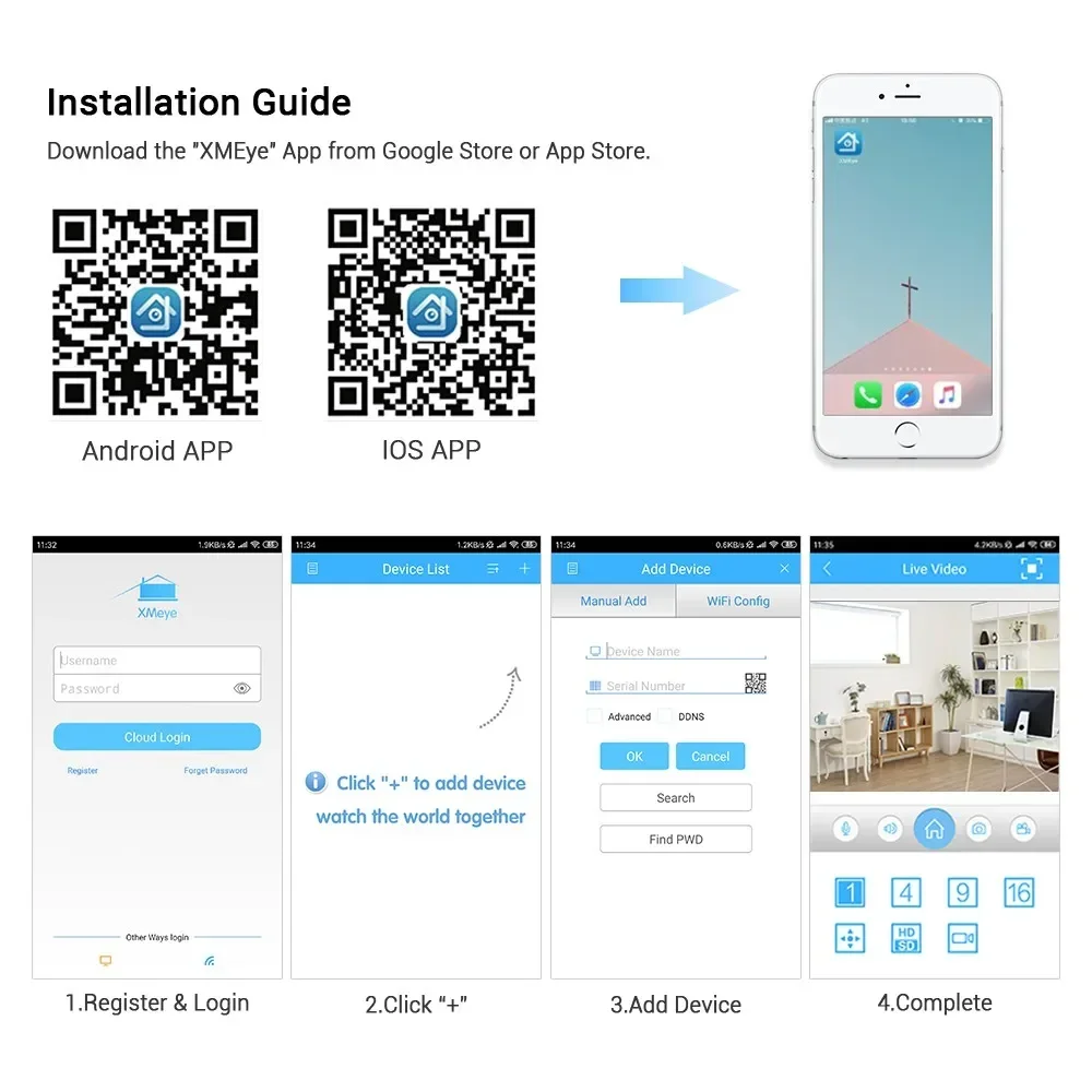 •Mobile phone viewing (iOS,android) :XMeye