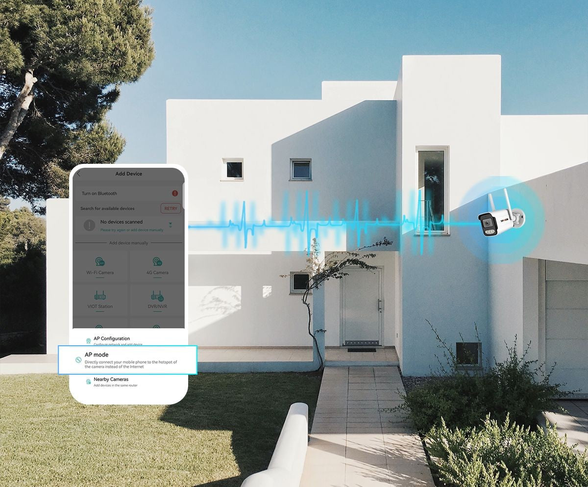 Our camera also support Ap hotspot conection,which don't requies any network. (AP mode requires no more than 10 meter distance)