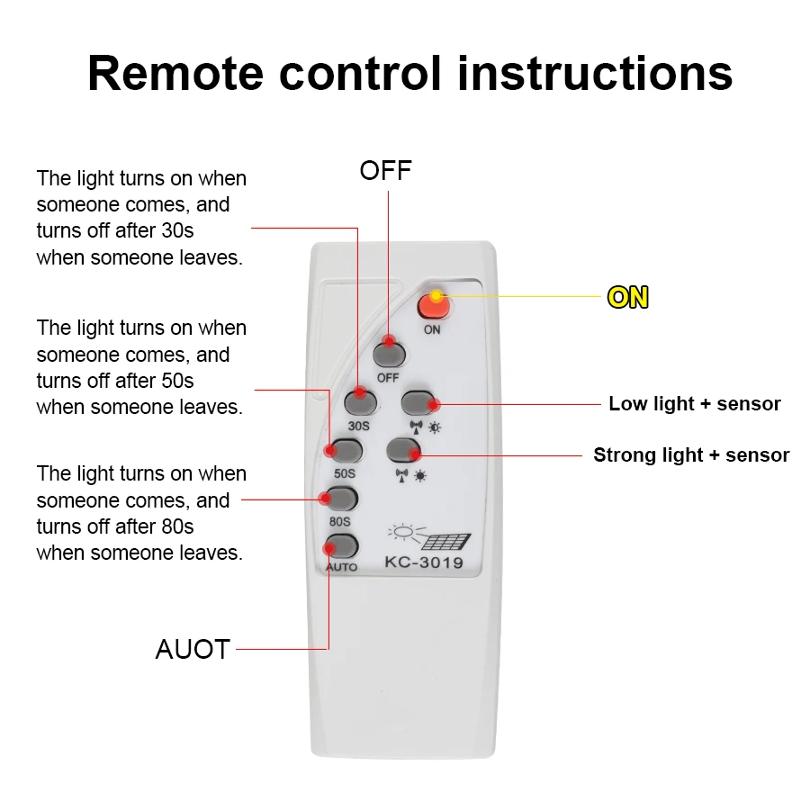 Human body induction + remote control: Solar lights have multiple lighting modes, which can use human body induction for effective lighting and save power. Carrying the remote control, after installing it at a high place, you can use the remote control to control the switch