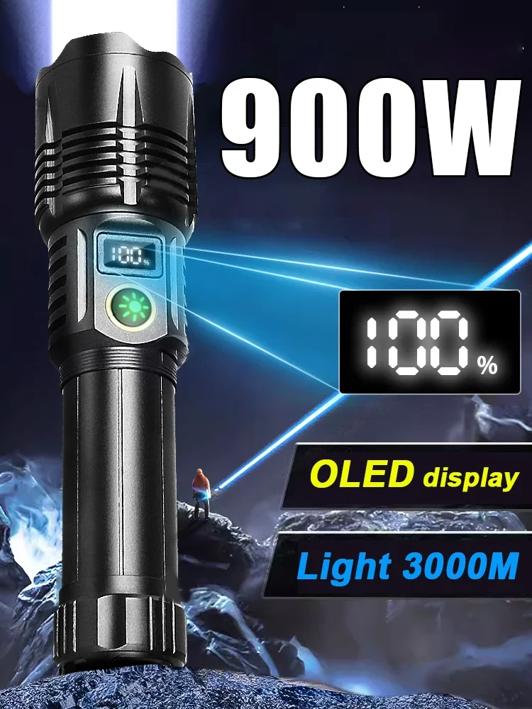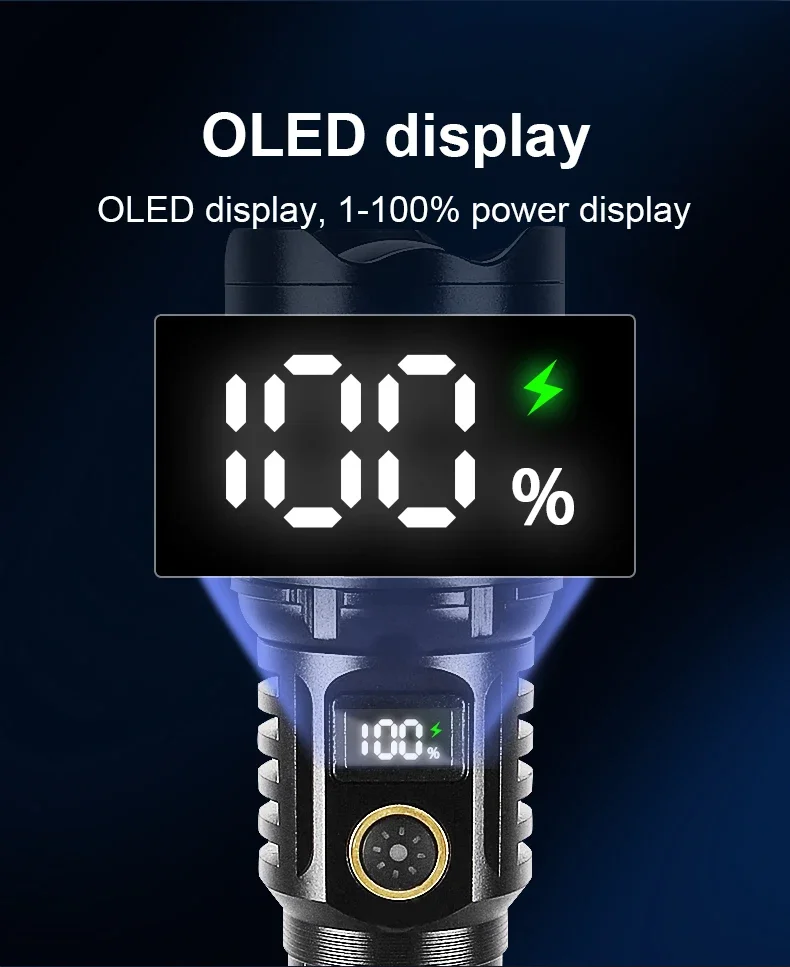 This flashlight is a new upgraded ultra-long-distance laser LED flashlight launched in 2025. LED wicks have the characteristics of stronger heat dissipation, longer service life and higher brightness. The lighting distance can reach 3000 meters. Release super brightness from a long distance. Can meet any of your night activities. Using 1*18650 or 1*26650, it can be used continuously for more than 15 hours outdoors. Using a high-performance Type-C interface, it can be fully charged in 4 hours. The clear real-time digital power OLED screen allows you to know the power of the flashlight at all times! This small flashlight is not only a good choice for relatives and friends, but also a good choice for holiday gifts and the best assistant for night outings! Perfect for camping, fishing, overnight trips, exploring, search and rescue, and more!