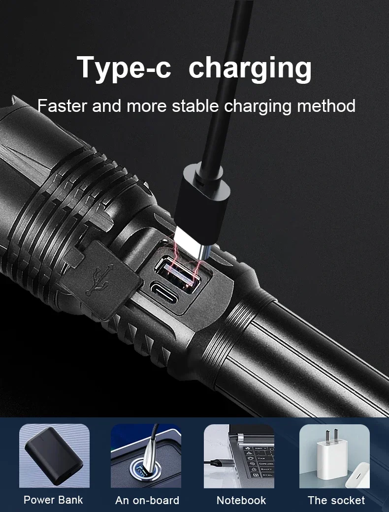 990000LM Most Powerful Flashlight Type-c Recharge 3000M Spotlight Tactical Flash Light 5000mAh High Power Led Flashlights Torch