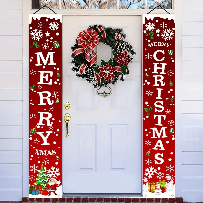 A Pair of Christmas Banners for Holidays: Suitable for Home, Party, or Garden Decoration -180cm/70.8 Inches X 30cm/11.8 Inches