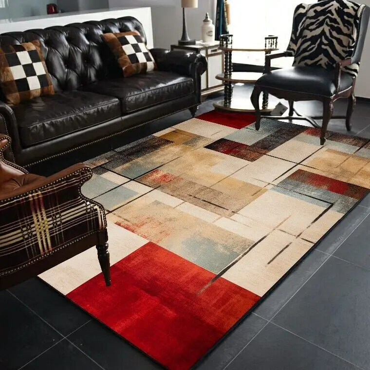 Abstract Geometric Large Rugs for Living Room Nordic Retro Room Decoration Home Mats Non-slip Washable Bedroom Cloakroom Carpet