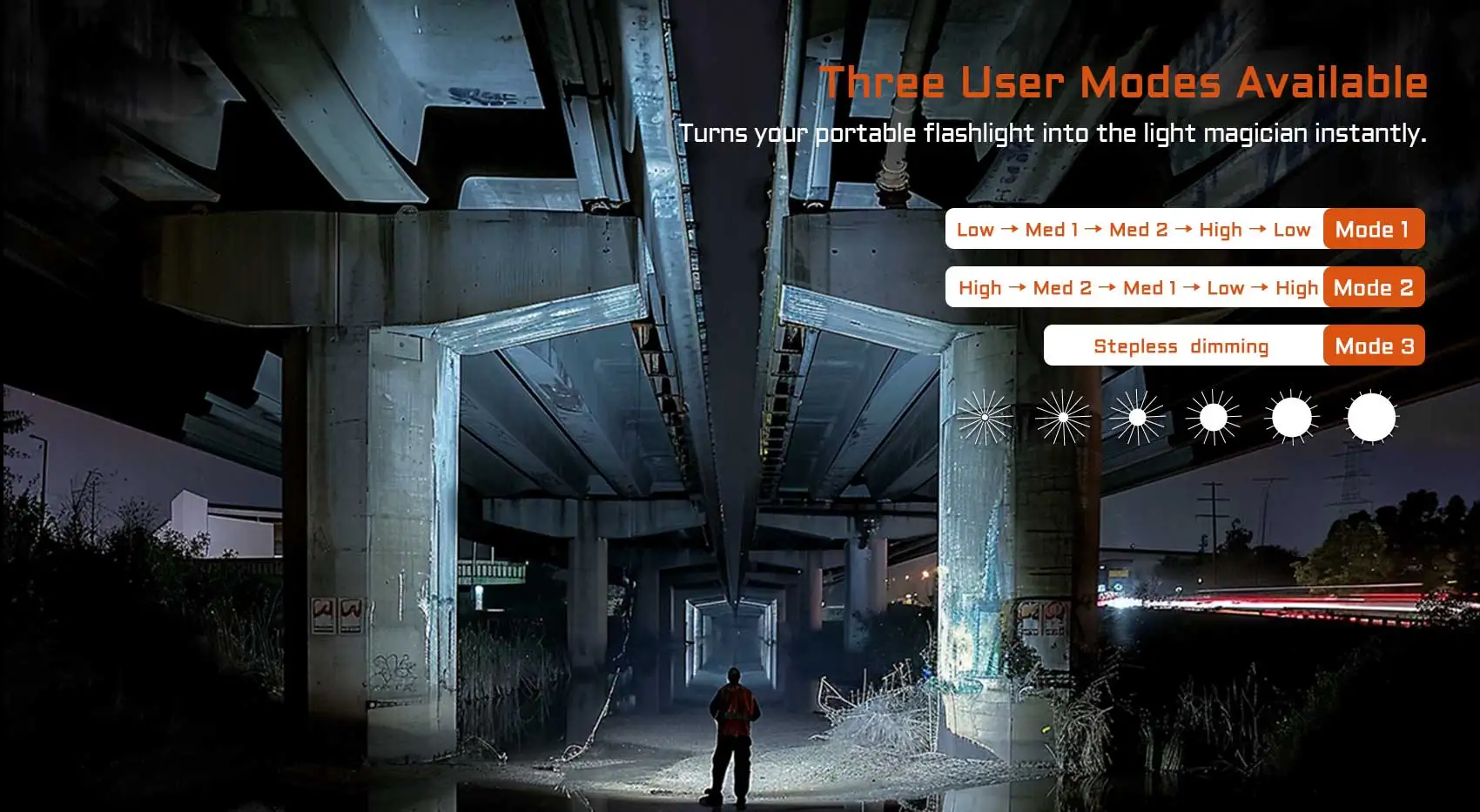 9,6 white brightness levels, Strobe, SOS, and Beacon cater to your lighting needs in various scenarios
