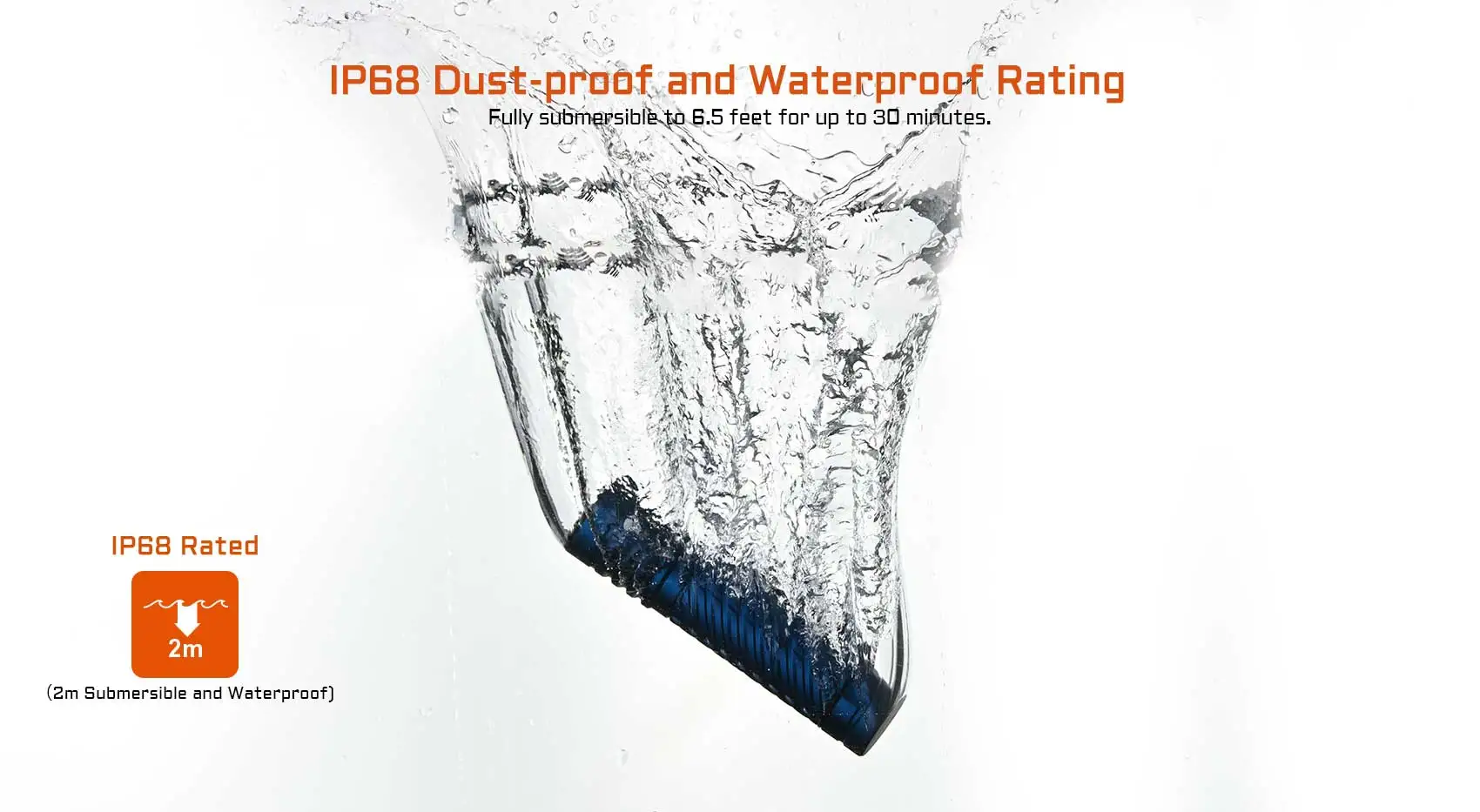 15,IP68 rated, provides effective protection against dust, and can fully submersible to 2 meters / 6.5 feet for up to 30 minutes