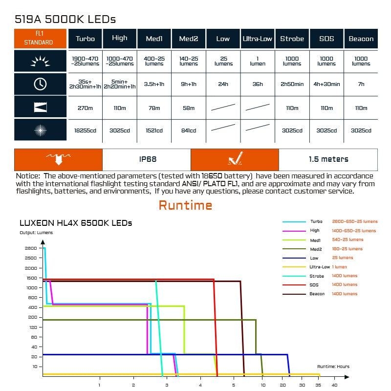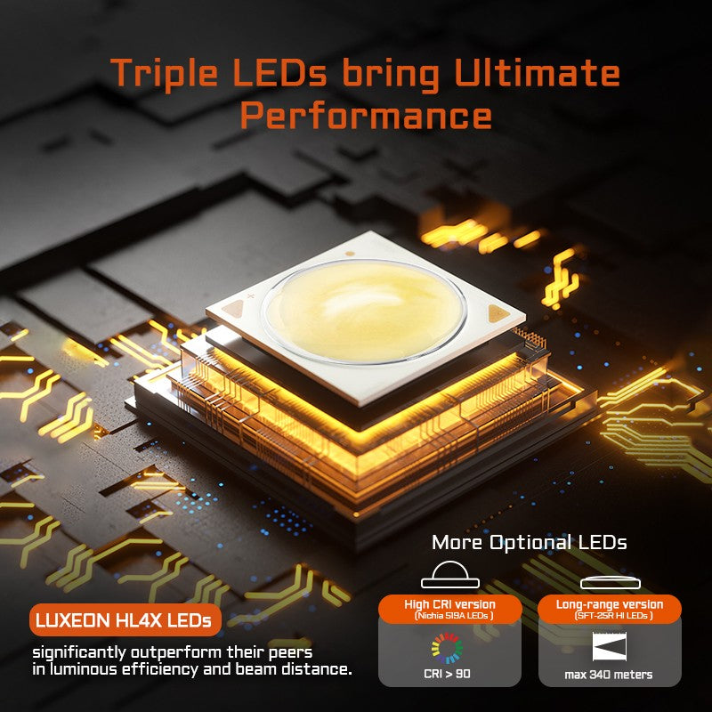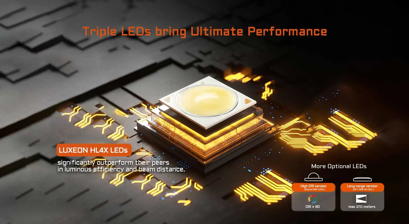 - LUXEON HL4X 6500K LEDs, max 2800 lumens