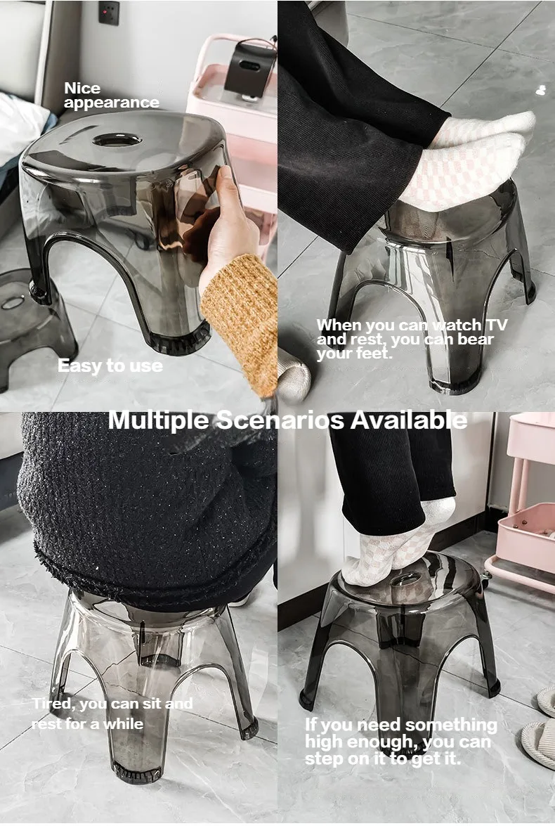Product Stool: Transparent small stool for kids in the bathroom, low stool, home changing shoe stool.