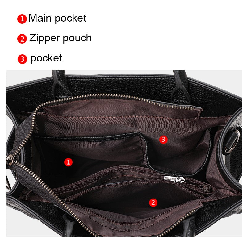 Aidrani women's large capacity handbag with letter print design, made of cowhide material, black