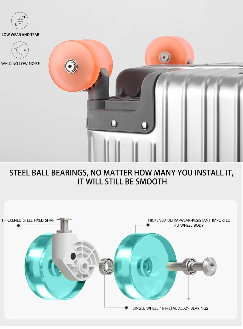 Anti-stuttering: 360° omnidirectional rotation, suitable for complex ground (such as airport marble and uneven road surface).