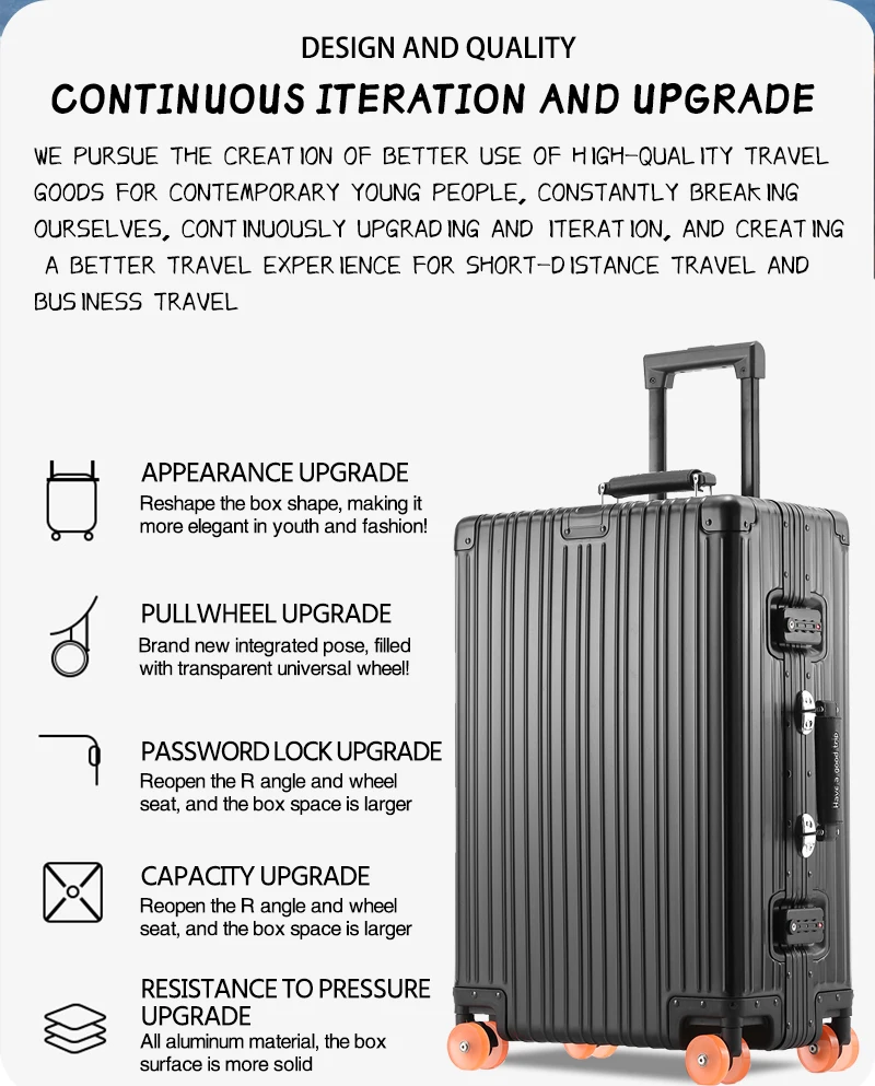 All-Aluminum Magnesium Alloy Suitcase Large-Capacity Password Luggage Infused Transparent Rolling Wheel Business Trolley Case