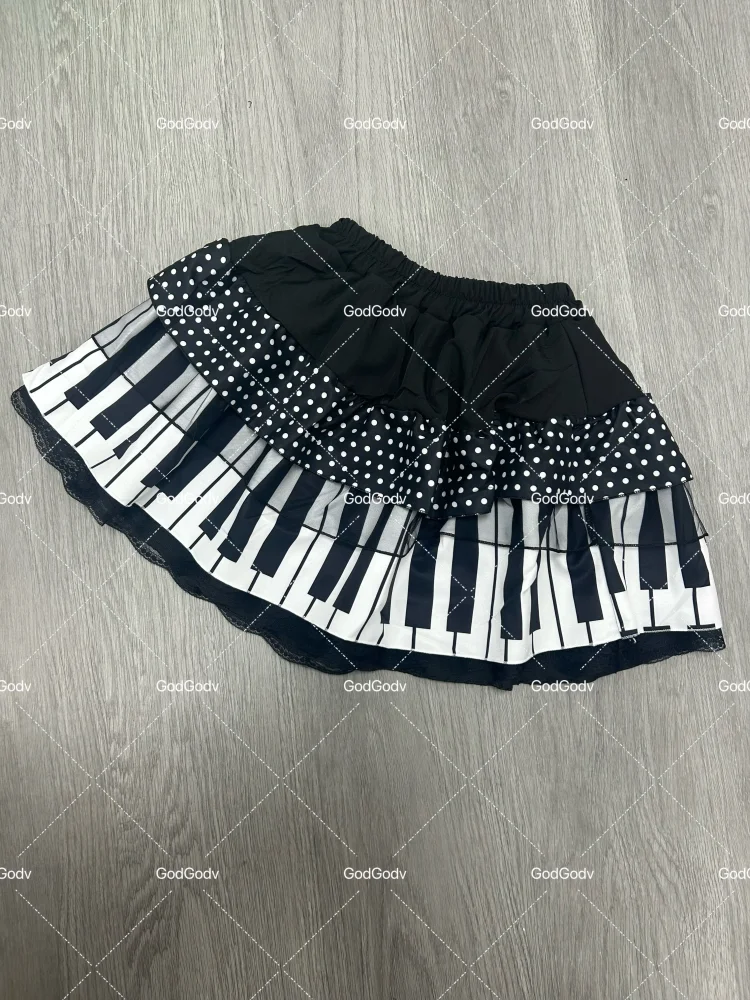 American Vintage Black White Piano Keys Skirts Y2k Slim Waist Ruched A-line Skirt Women 2025 Summer New Korea Style Chic Mujer