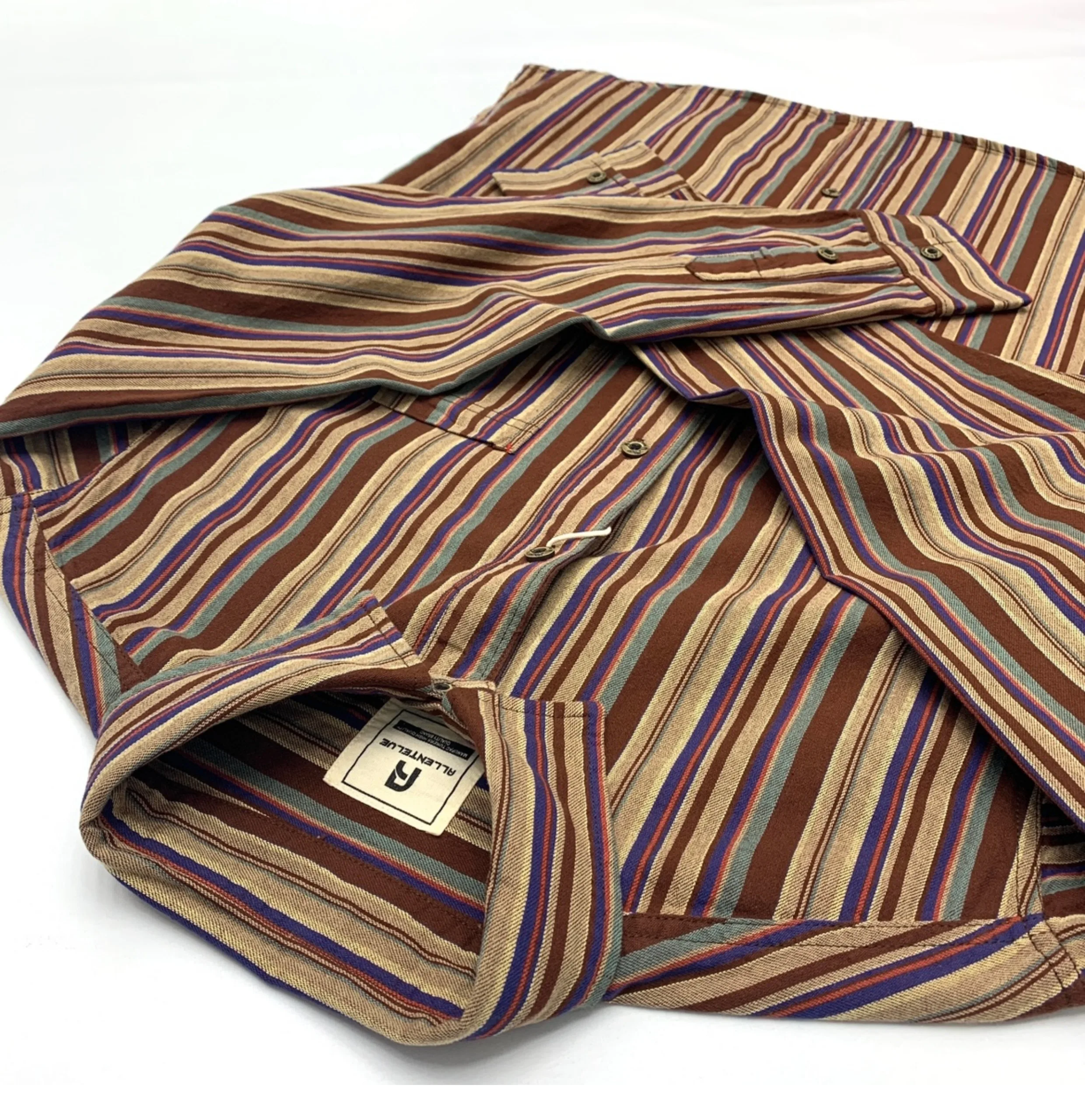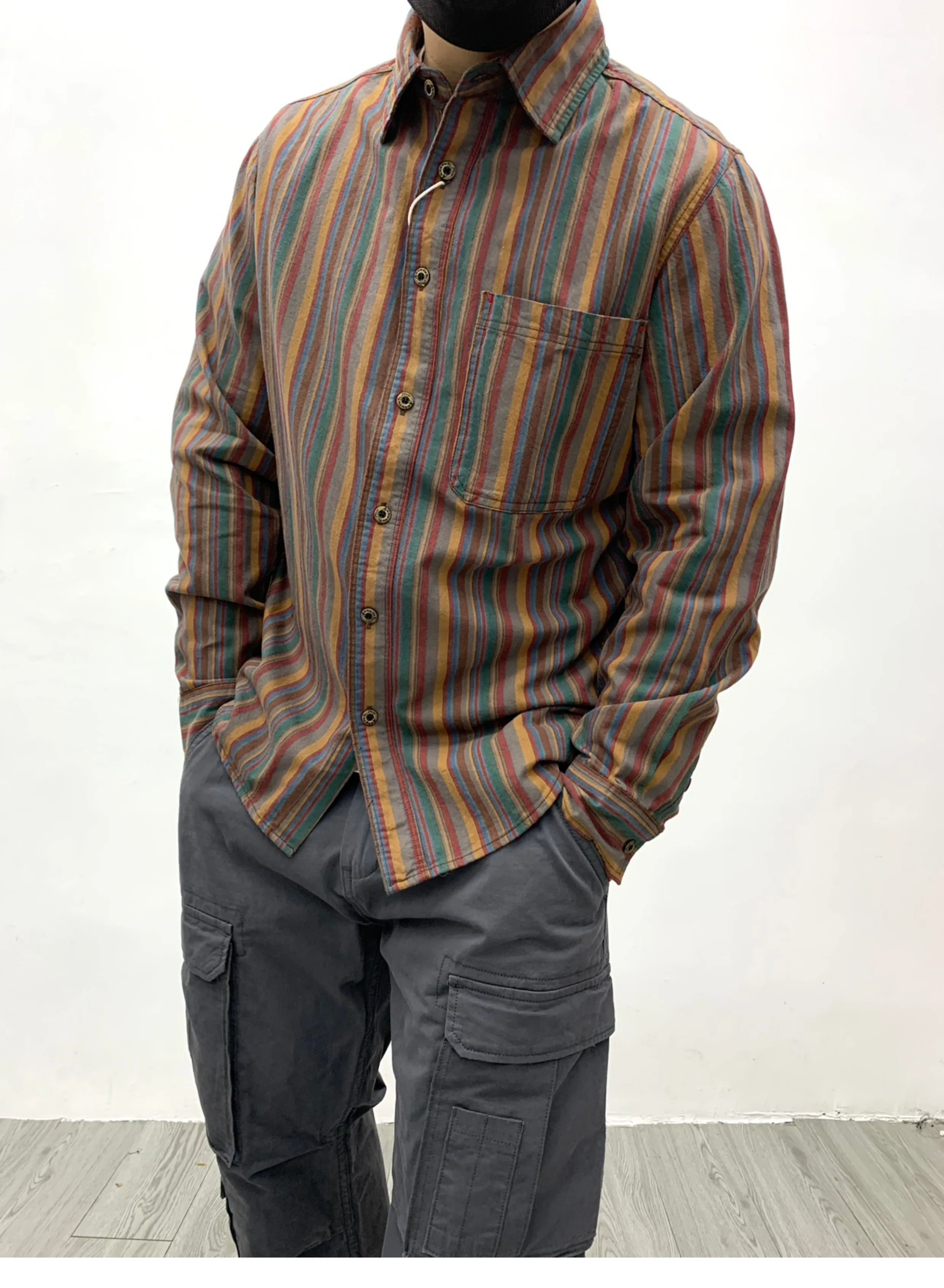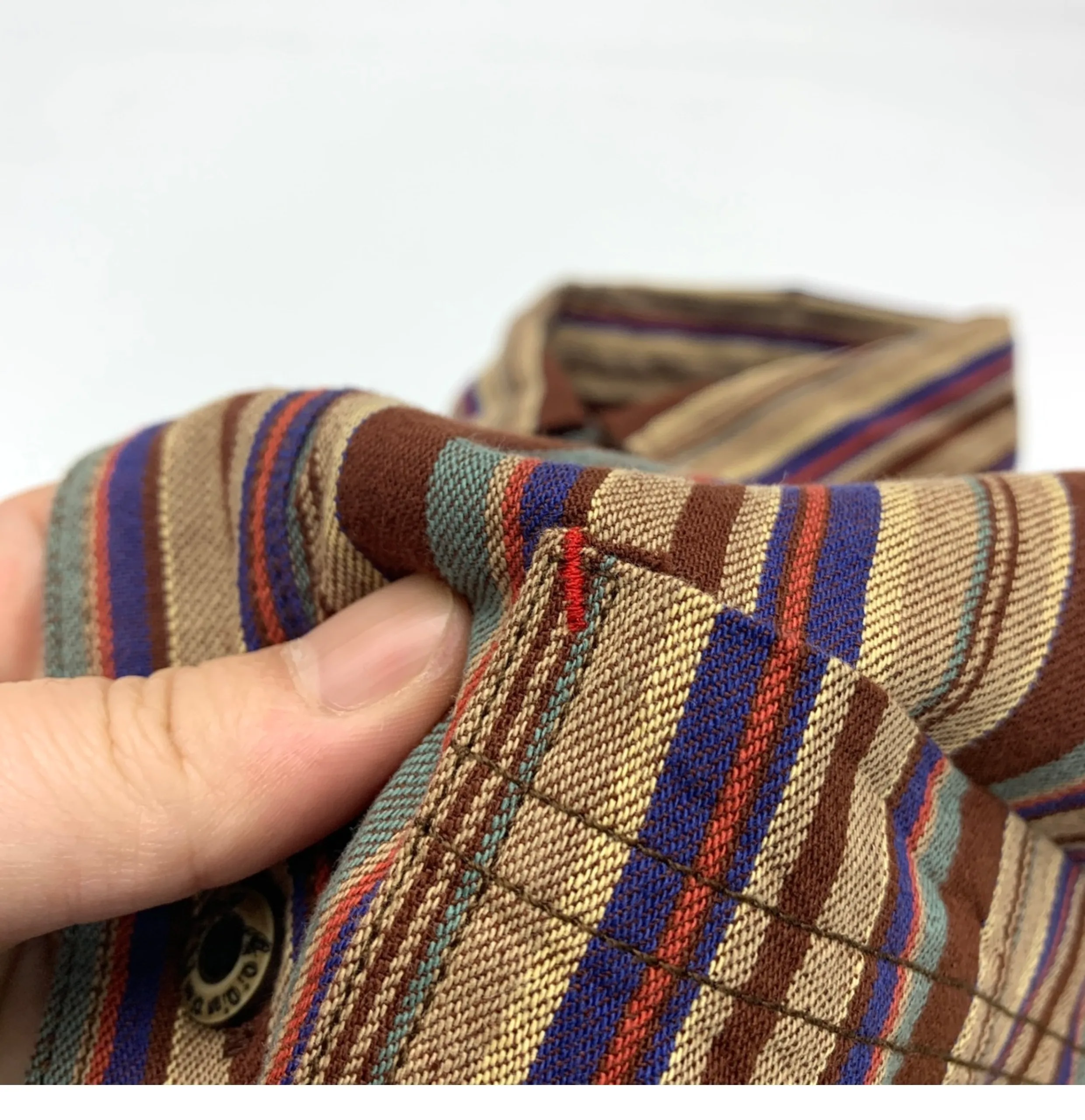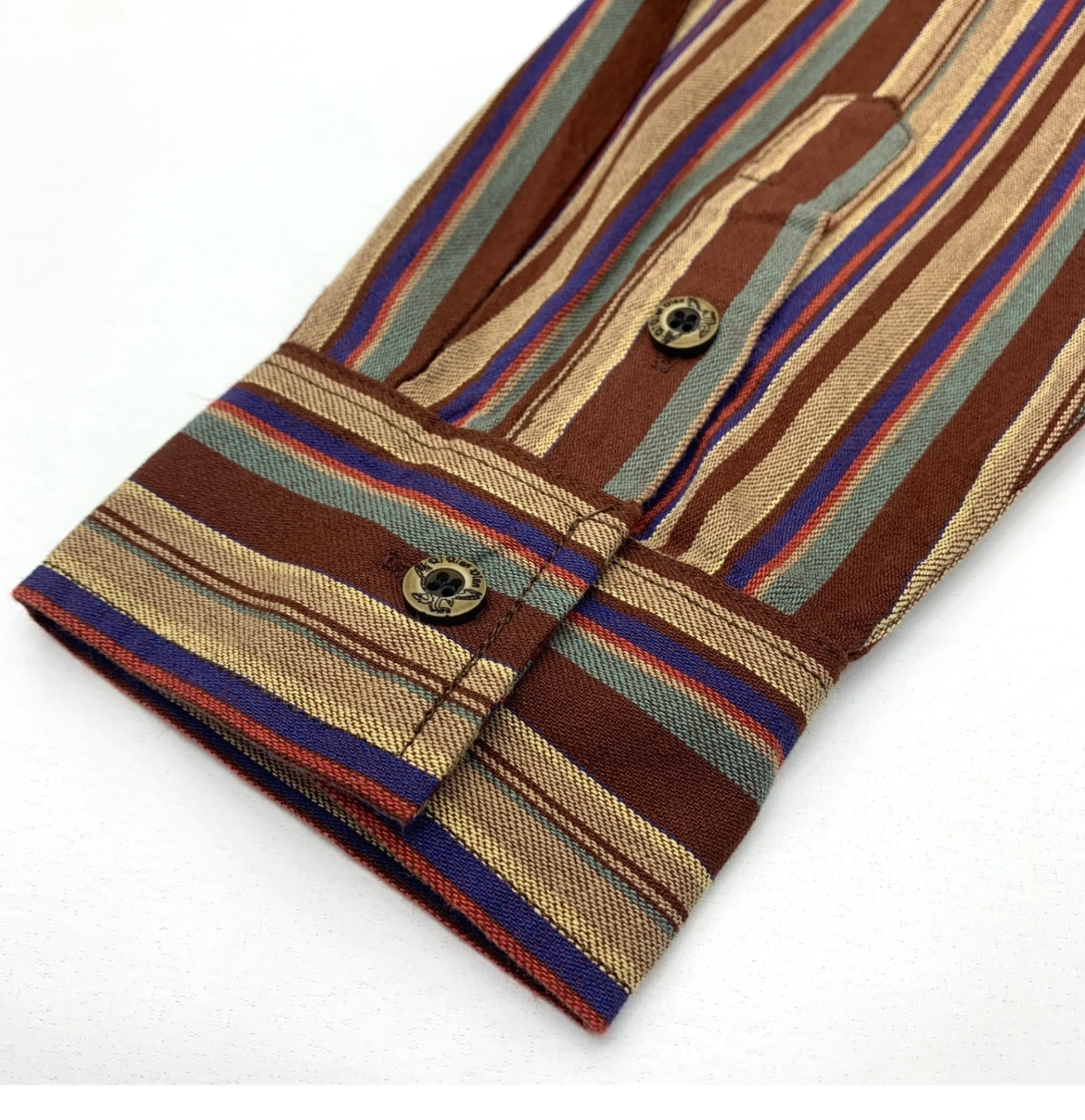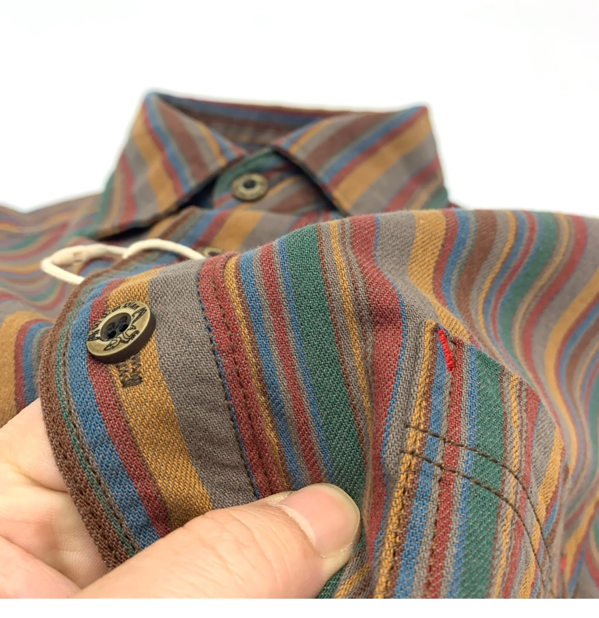 Amikaki Ethnic Style Men's Pure Cotton Colorful Stripes Shirt Loose Ancient Cargo Long Sleeved Shirt Jacket With Chest Pocket