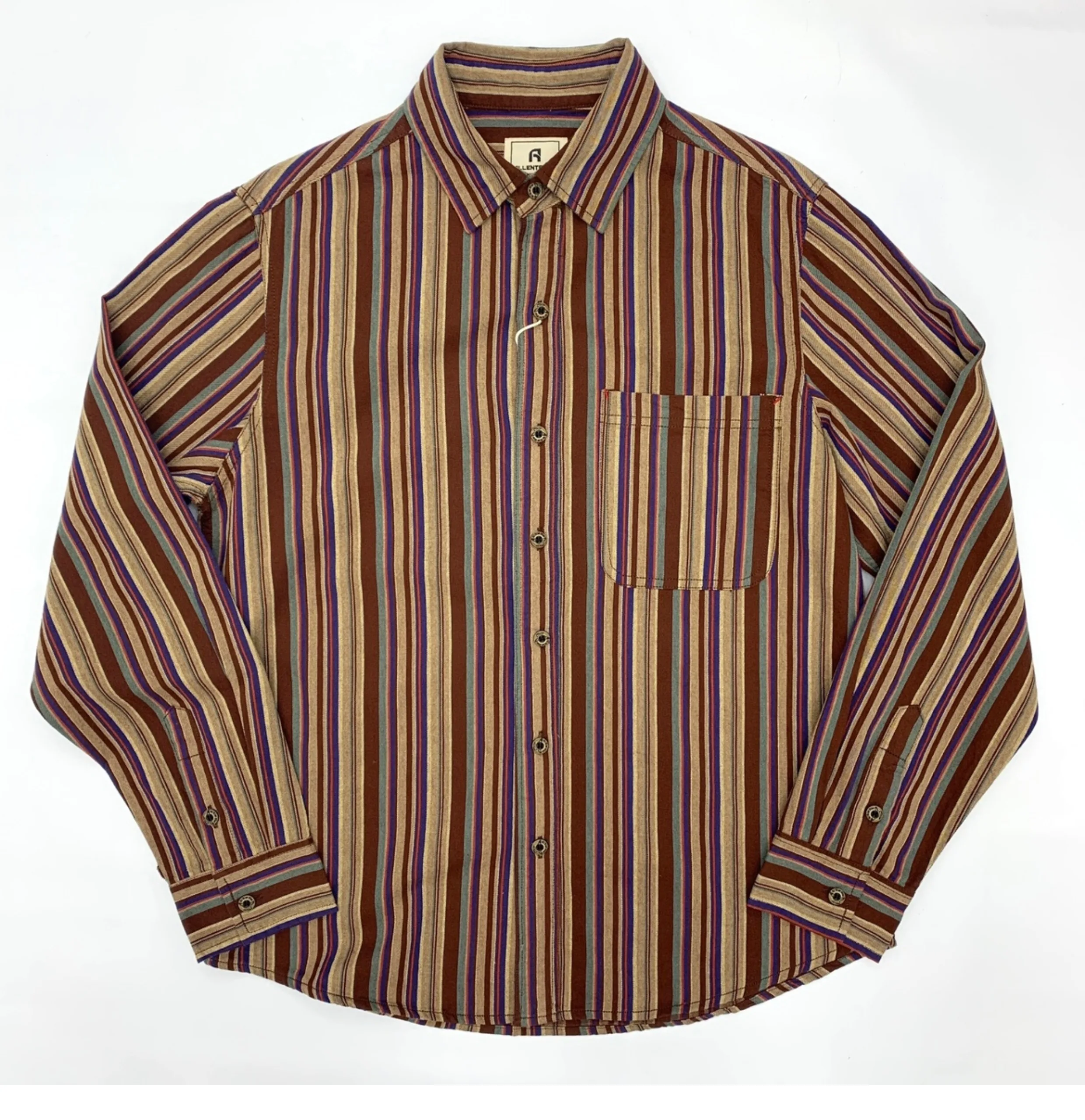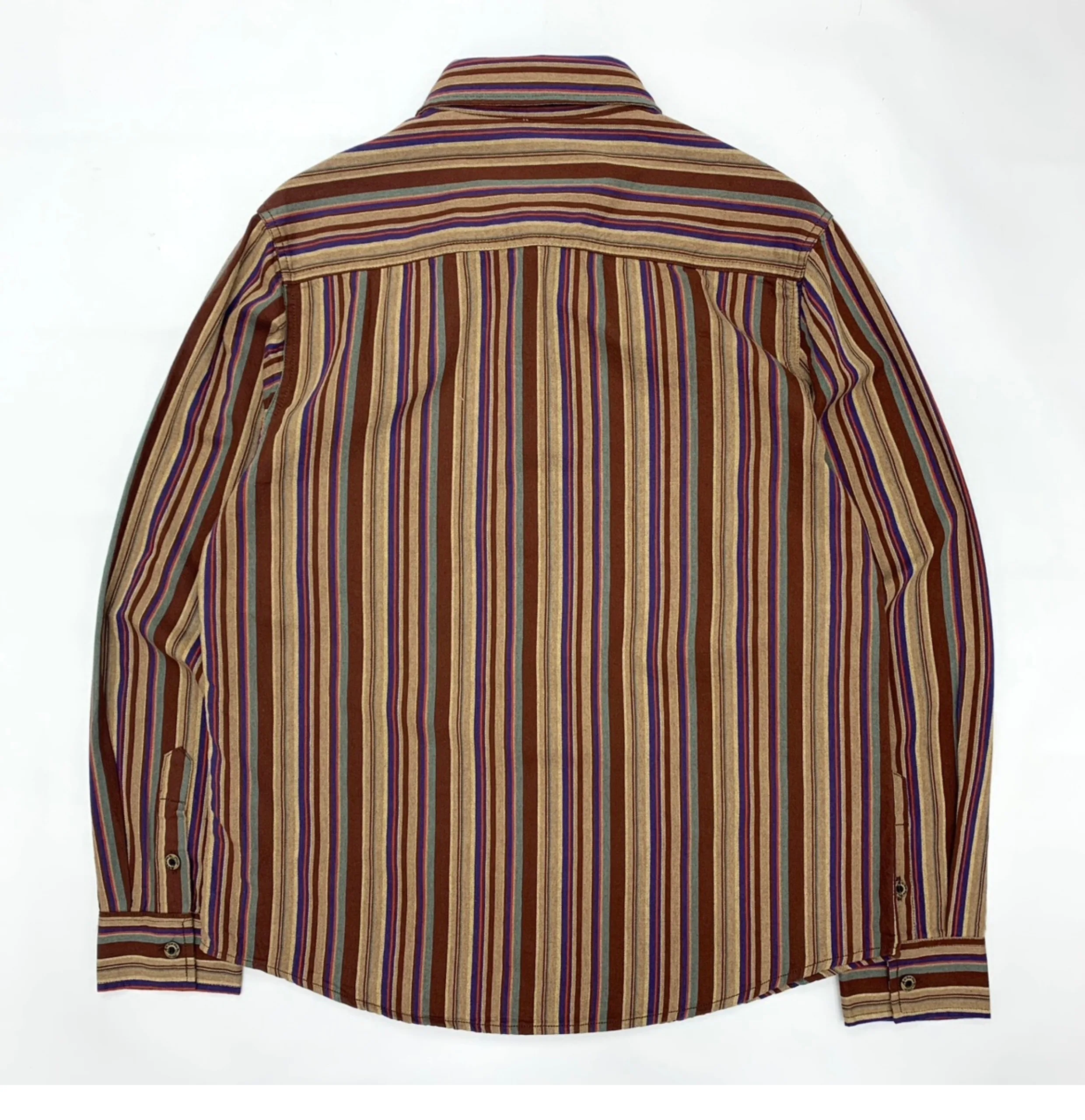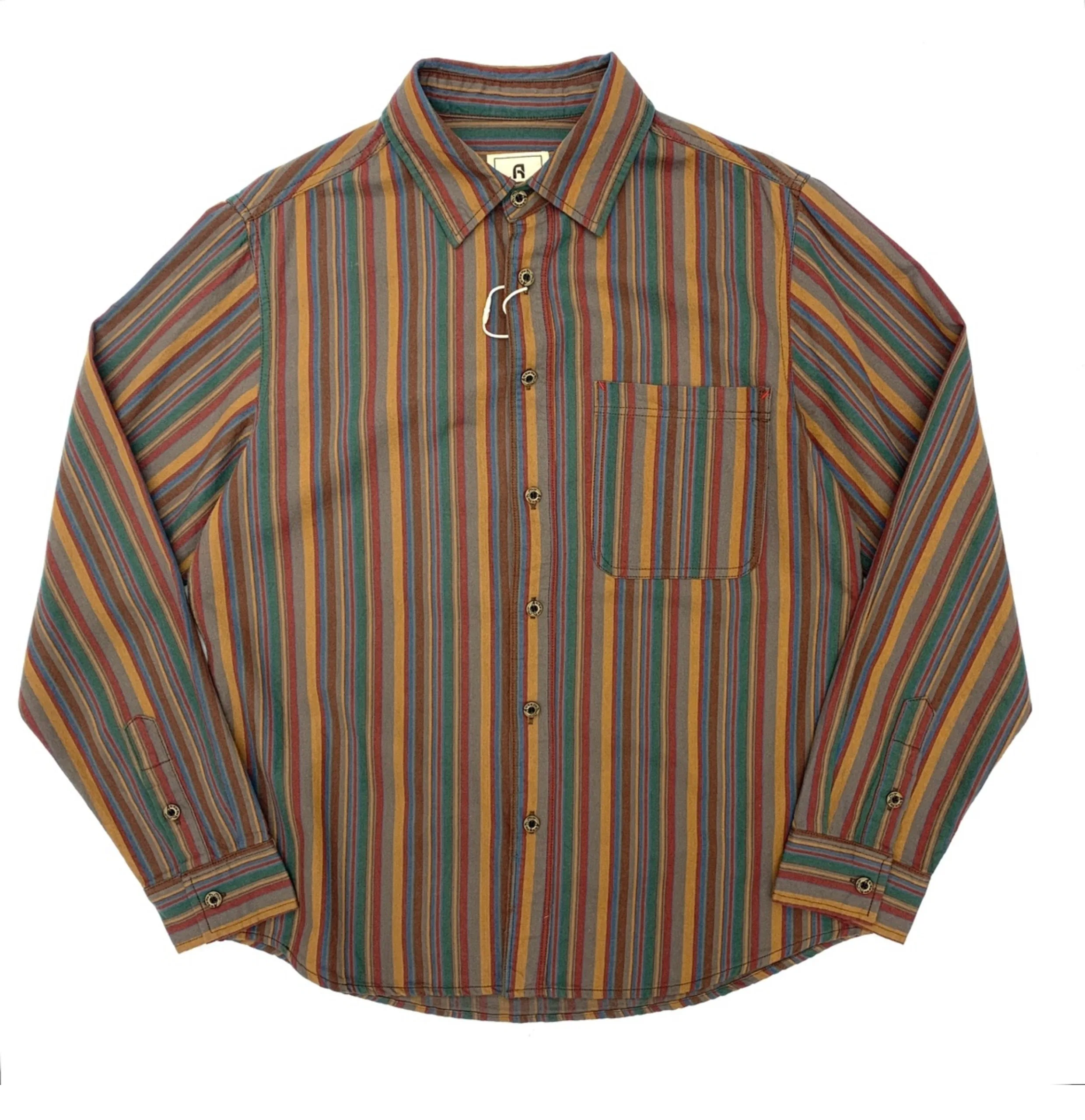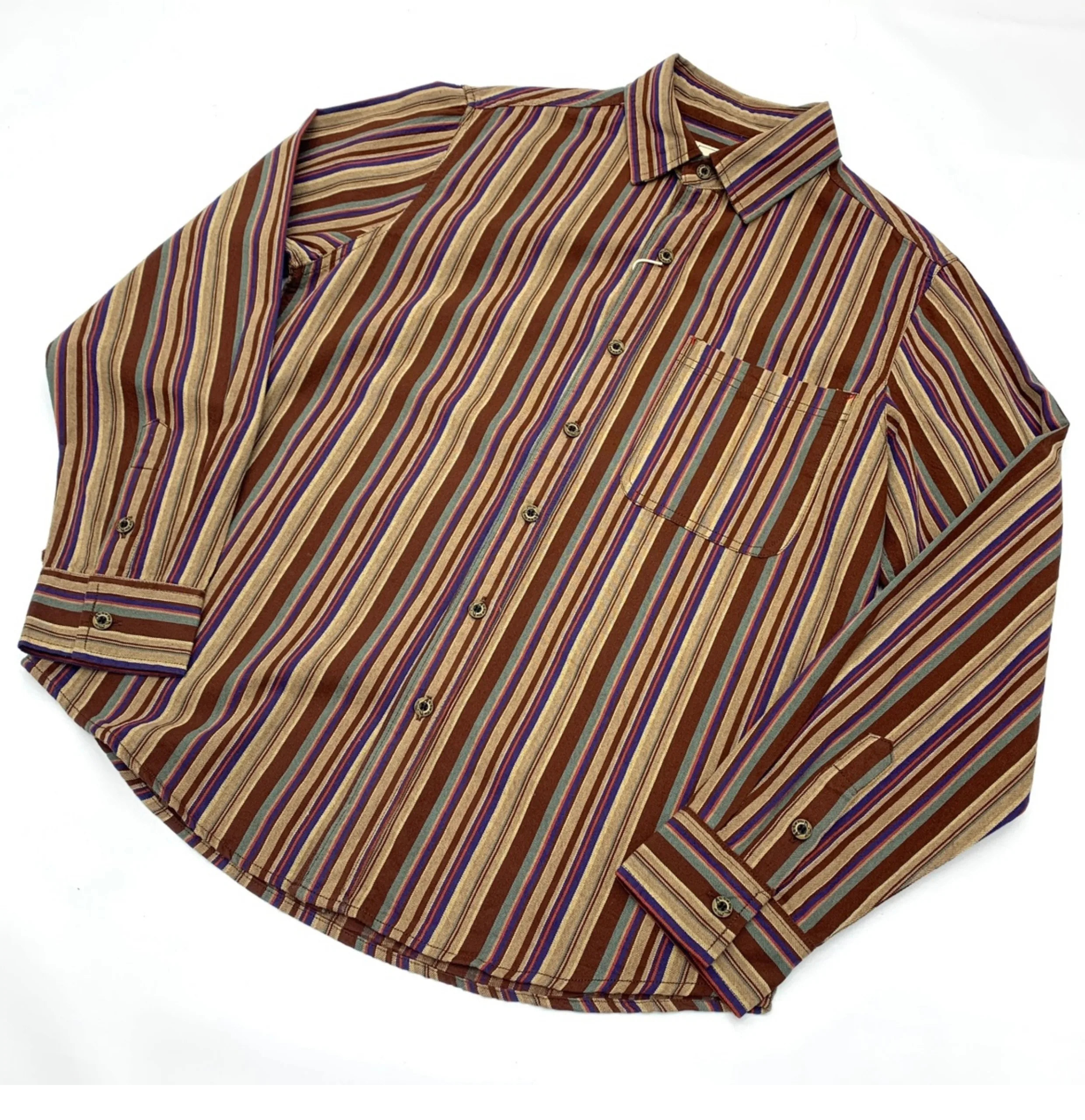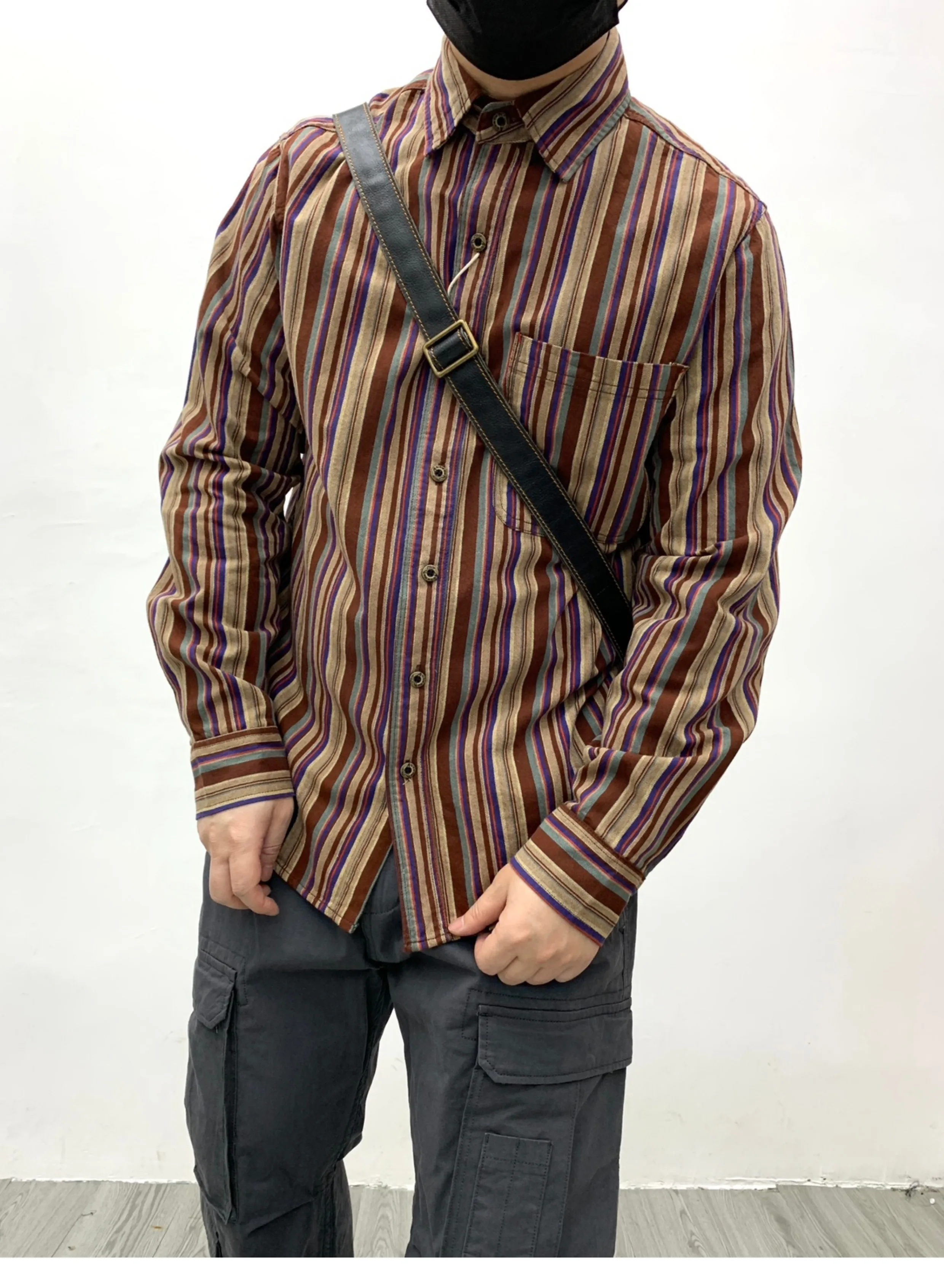 Amikaki Ethnic Style Men's Pure Cotton Colorful Stripes Shirt Loose Ancient Cargo Long Sleeved Shirt Jacket With Chest Pocket