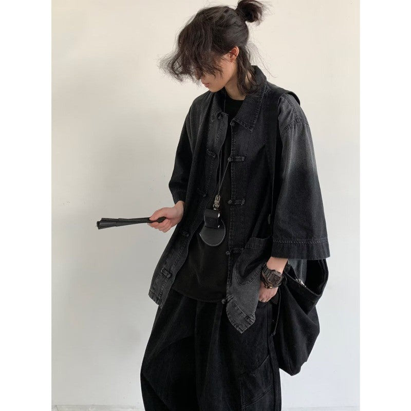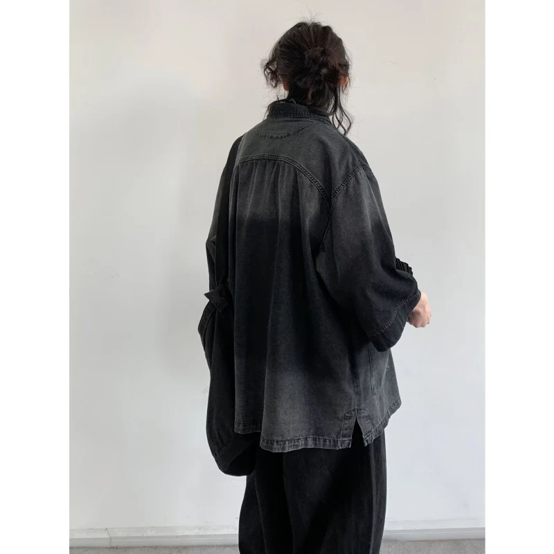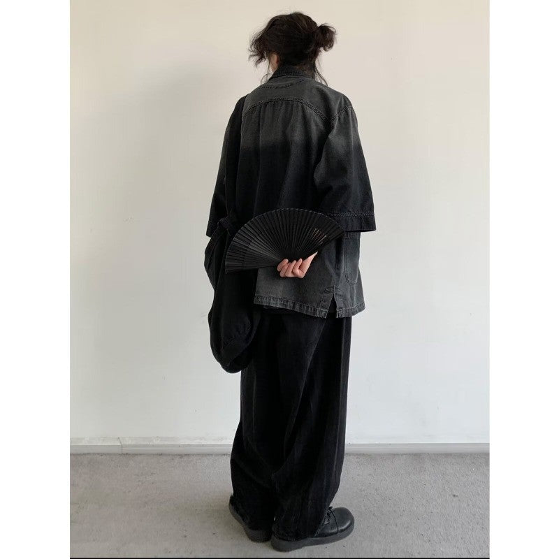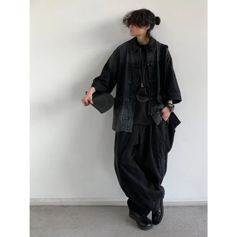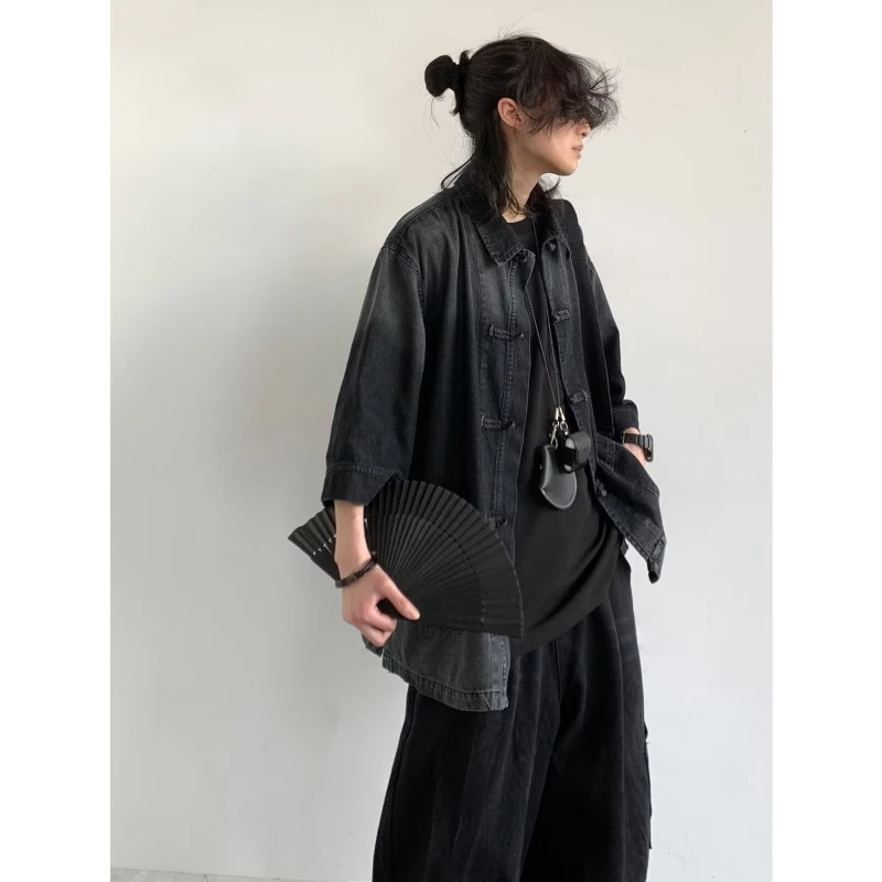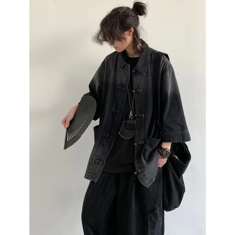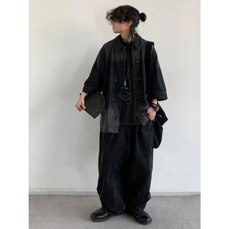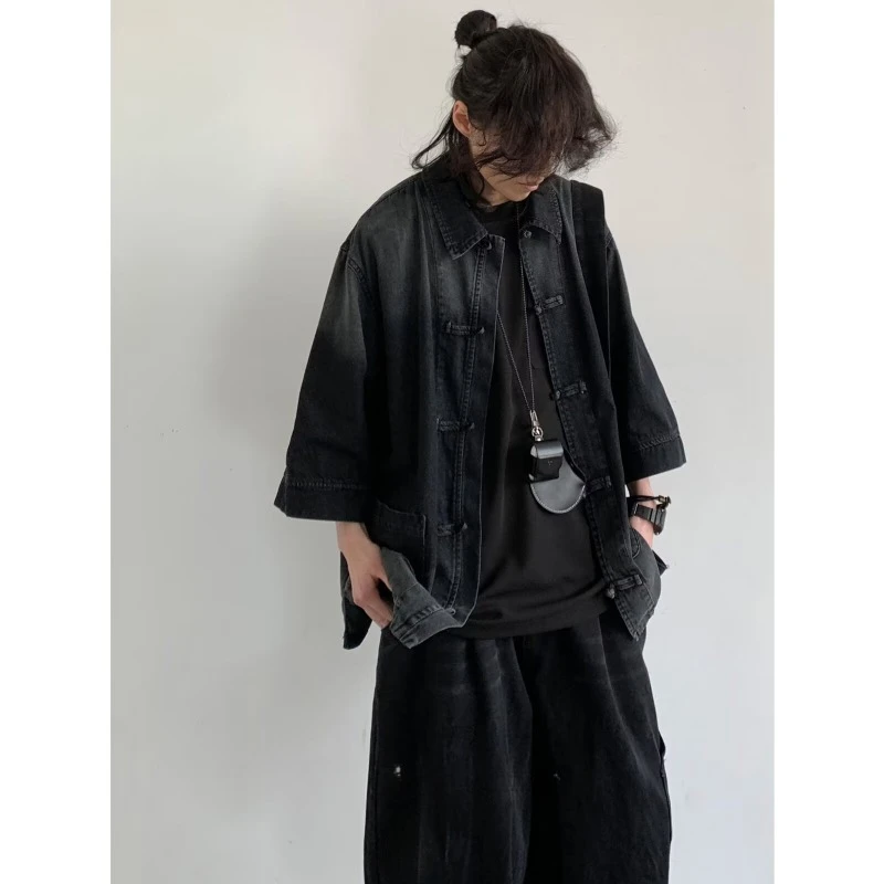 Ancient Style Denim Shirt Mens Halo Dyed Washed Single Breasted Short Sleeved Jacket Lapel Collar Fashion Tops Male High Quality