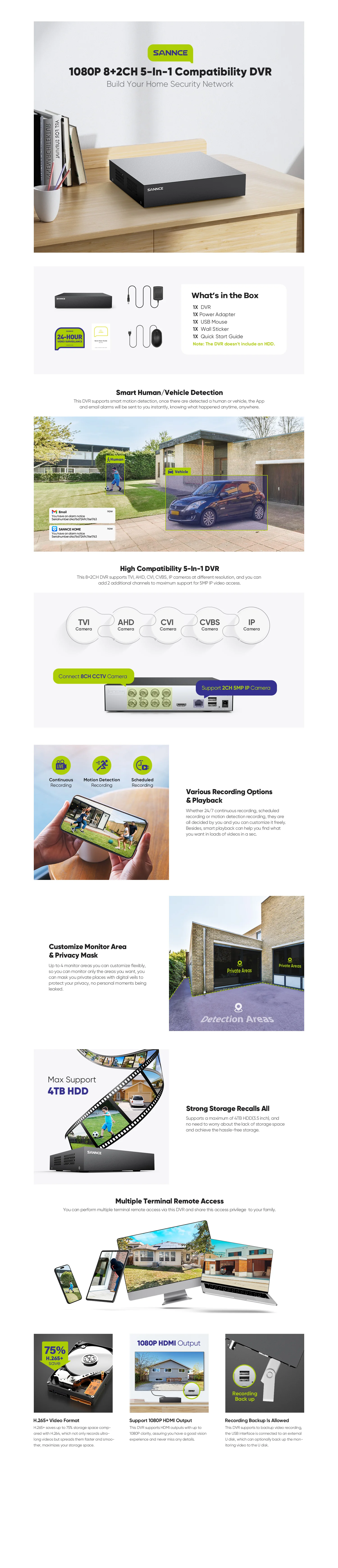 ANNKE 1080P H.265 Pro+ Security DVR Recorder with Human/Vehicle Detection 8CH Hybrid 5-in-1 CCTV DVR for Surveillance Camera