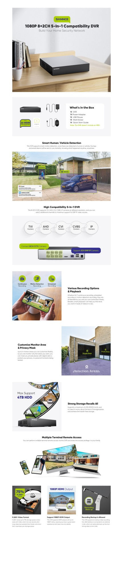 · HD TVI/AHD/CVI/CVBS/IP video input