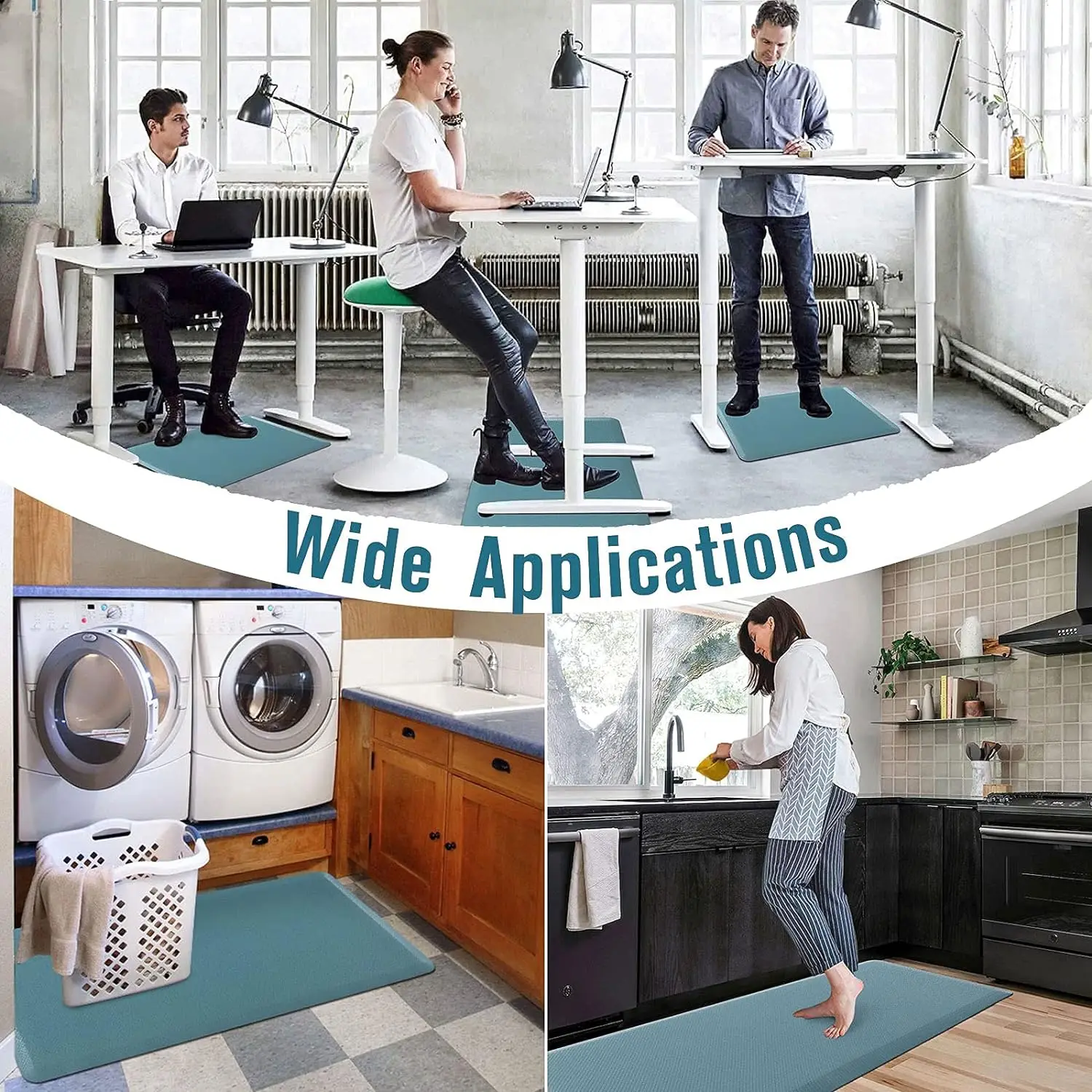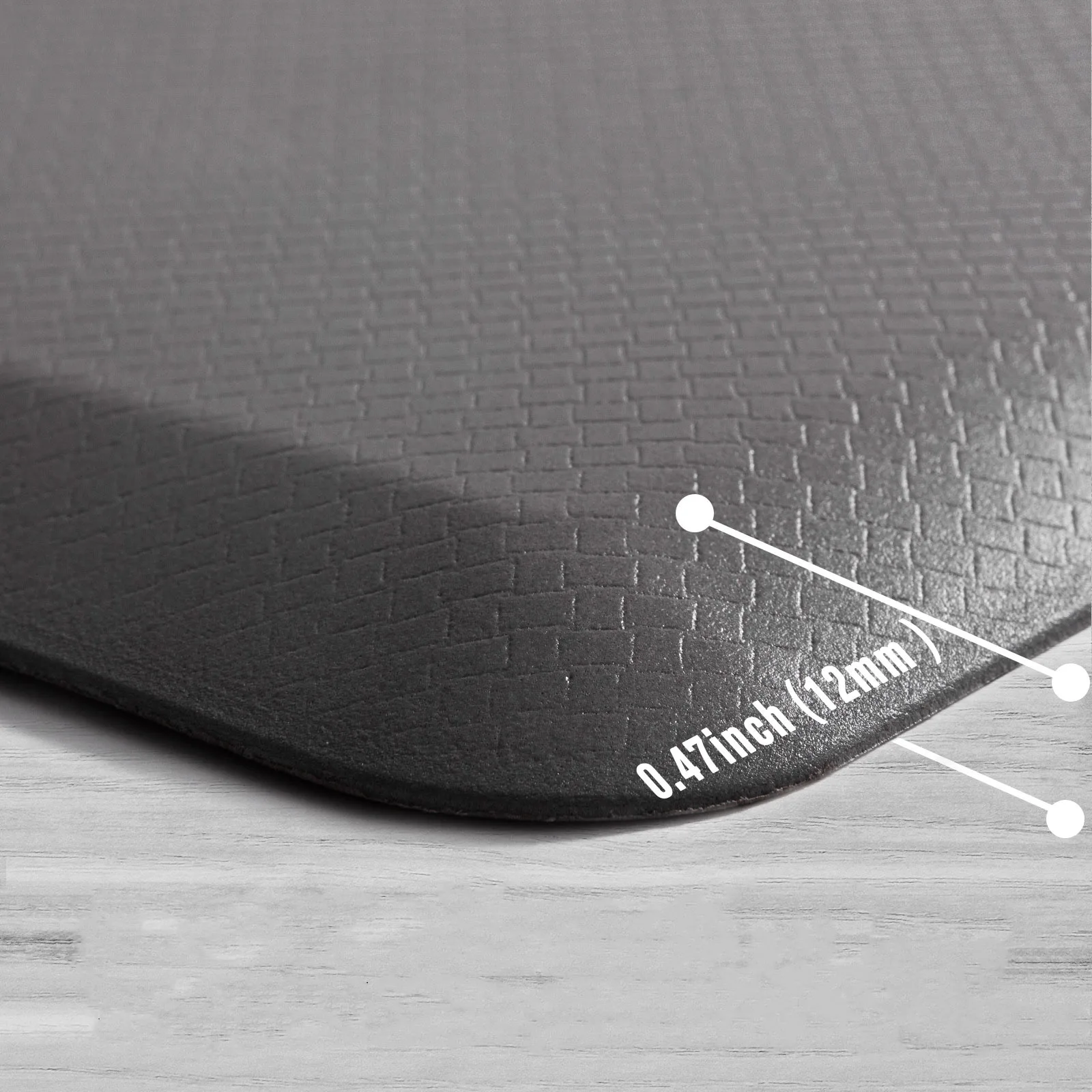 Material: The anti-fatigue kitchen mats are ergonomically designed, with a thickness of 0.47 inches (12mm), providing significant relief for back and joint pain during standing work.