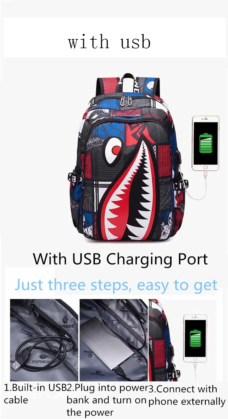 Anime Backpack Elementary Bookbag Travel Rucksack Cartoon Shark Print Primary School Student Satchel Backpack Mochila Infantil