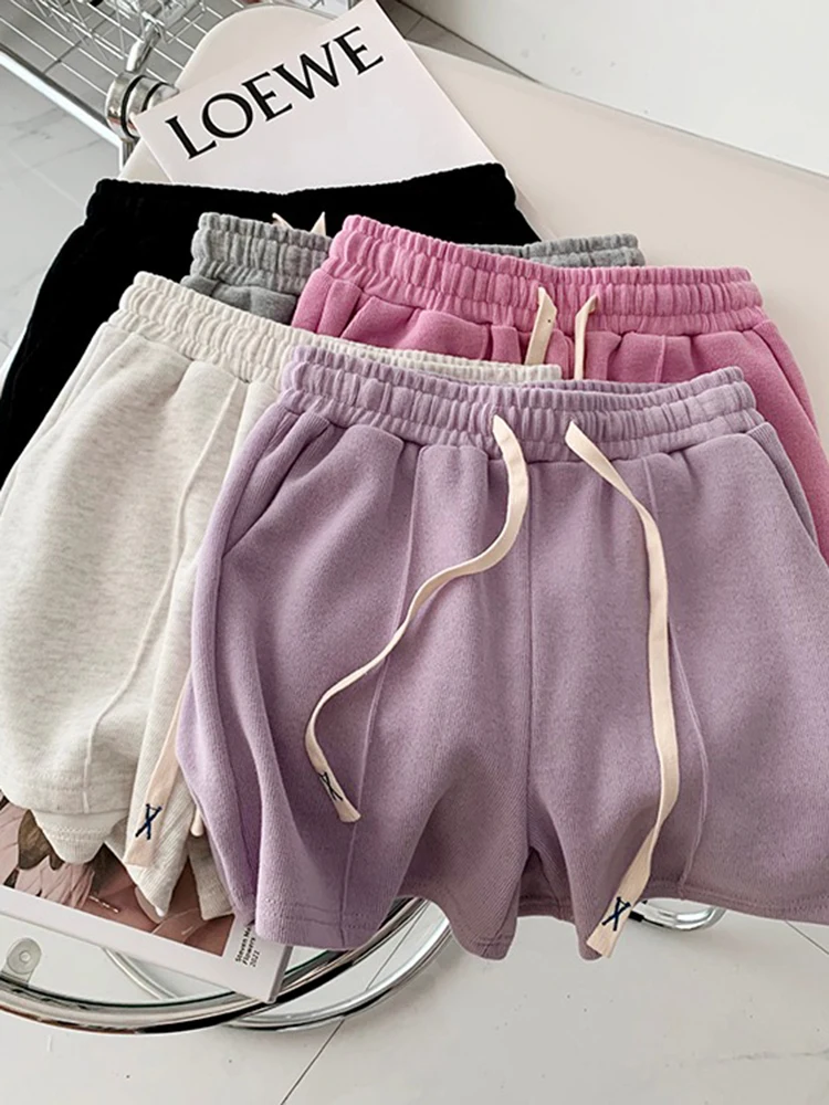 AOSSVIAO 2025 Summer Shorts Women Elasticity Lovely Girls Korean Style Sweet Students Harajuku Simple Pure Gray Trousers Female