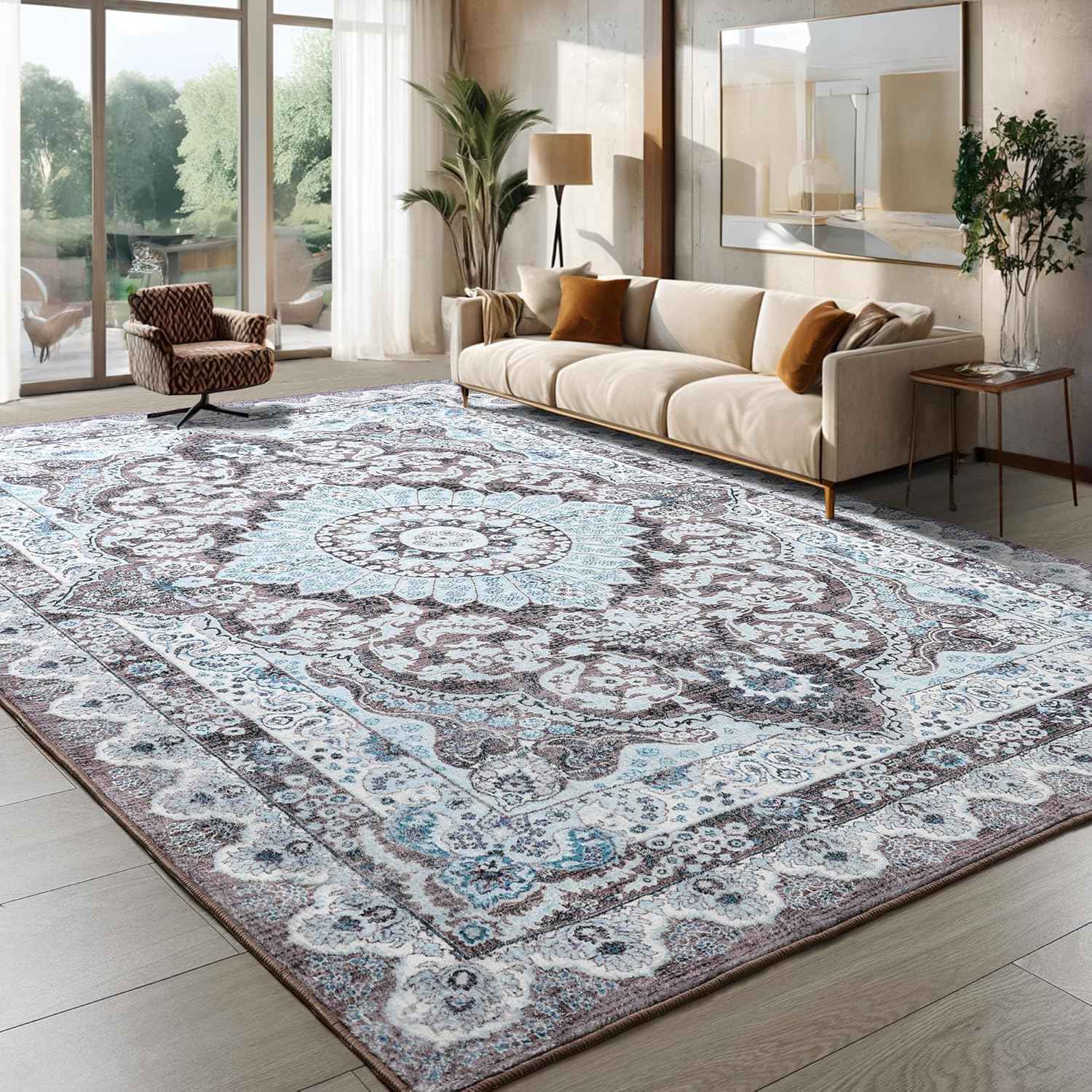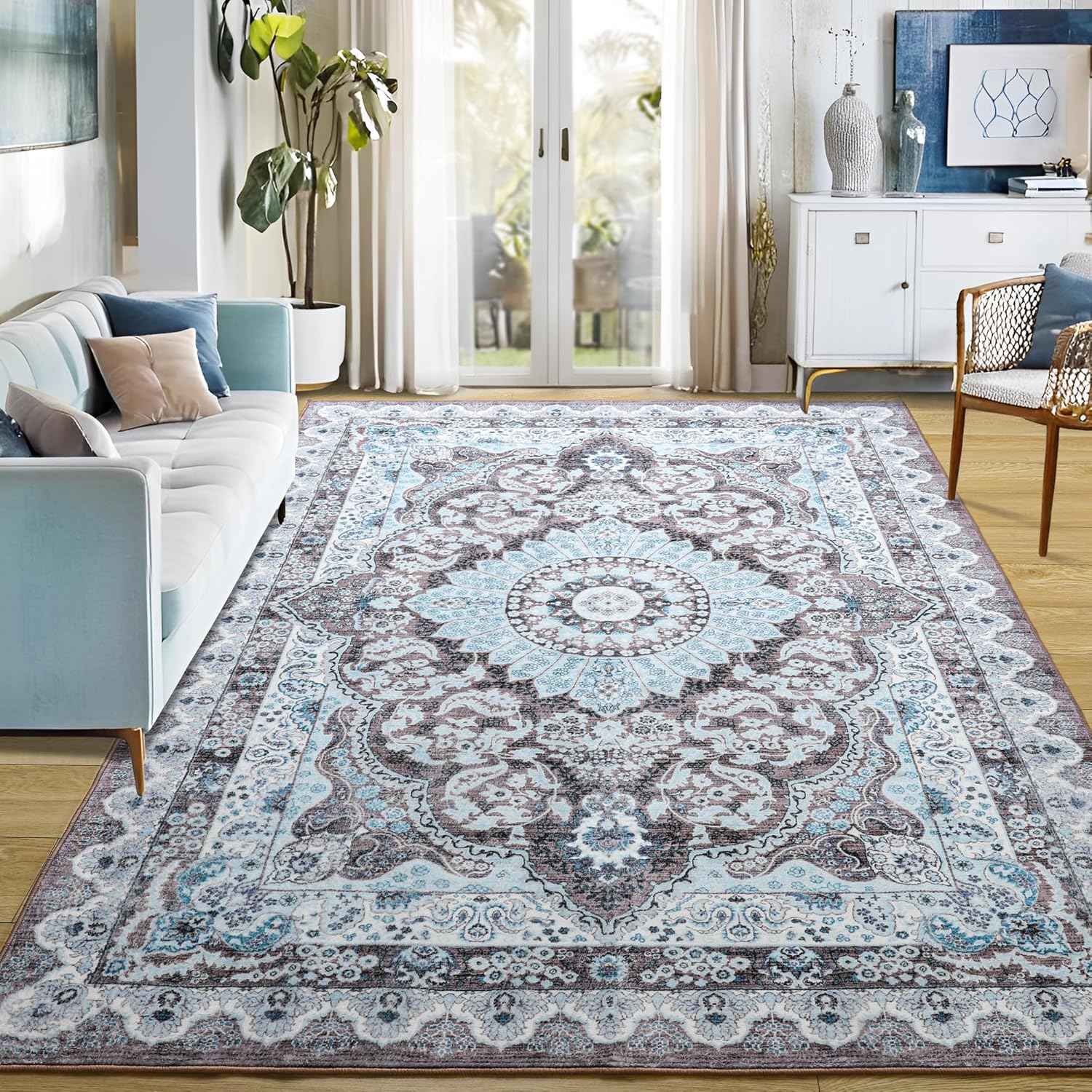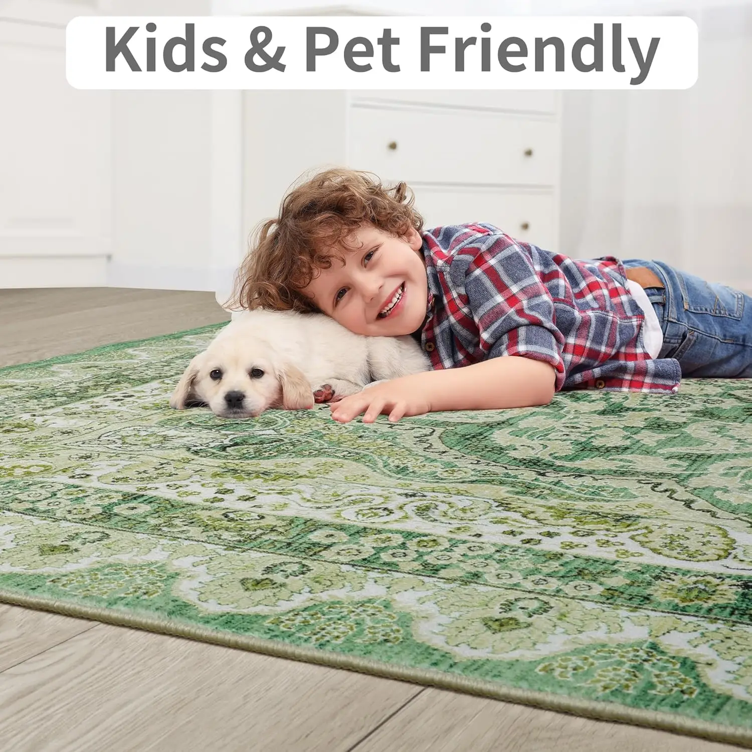 Area Rugs for Living Room, Machine Washable Vintage Rug, Non-Slip Low Pile Throw Rugs with Rubber Backing Washable Carpet