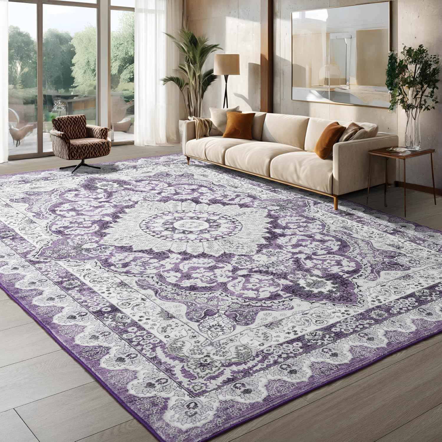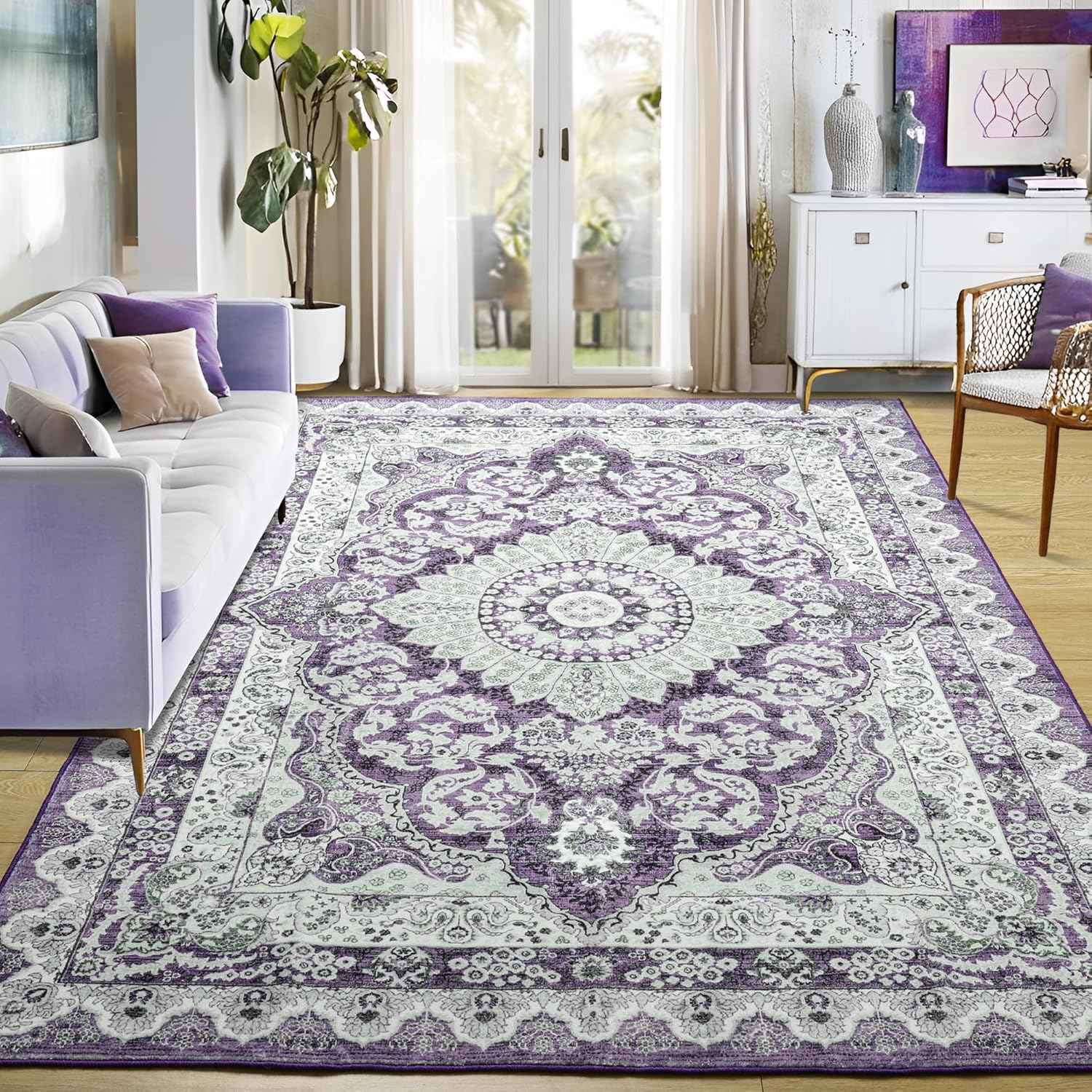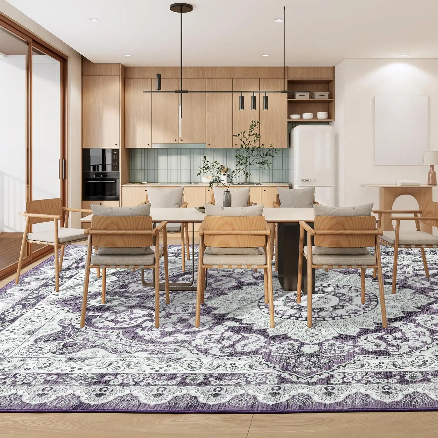Area Rugs for Living Room, Machine Washable Vintage Rug, Non-Slip Low Pile Throw Rugs with Rubber Backing Washable Carpet