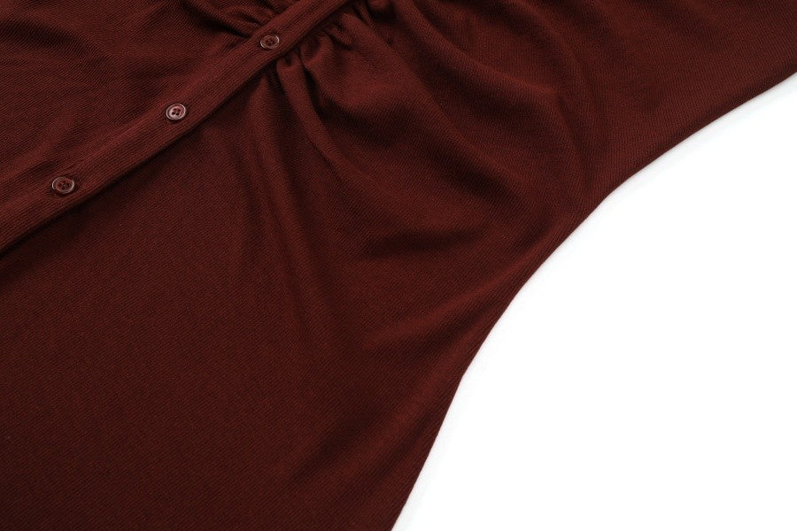 AS AW25 woman dress turn-down collar ribbing high elastic shirring maxi dress