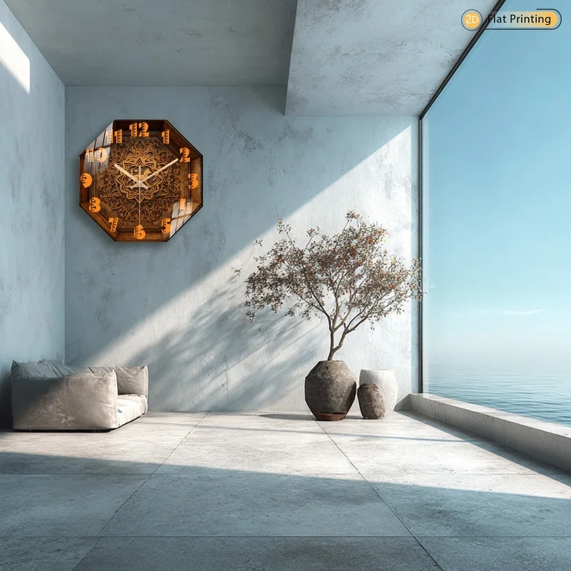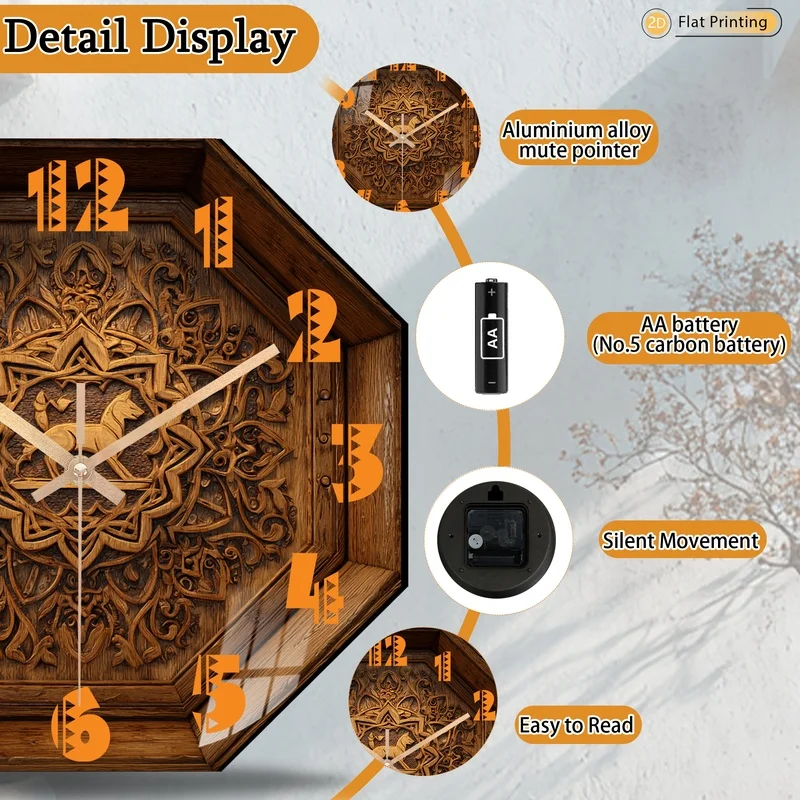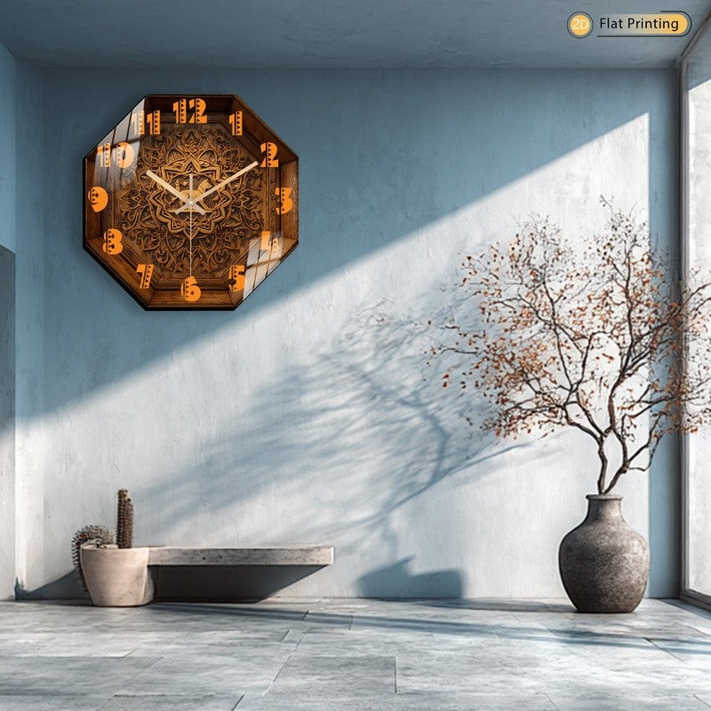 Attractive Premium Intricate Octagon Wooden Carved Deer Wall Clock for Office Farmhouse Valentine's Day Halloween Easter Gifts